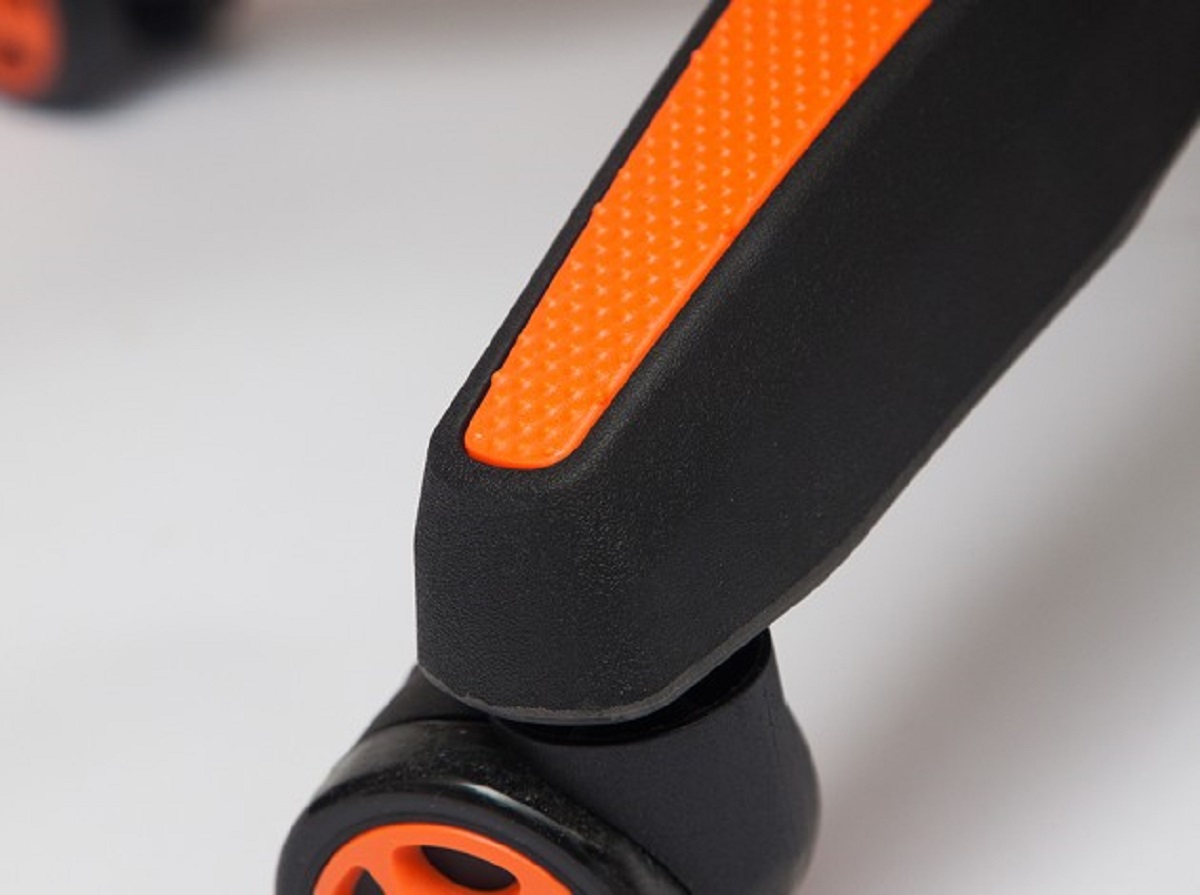 Подлокотники оснащены режимом «мульти», за счет чего их, как и подголовник, можно отрегулировать по высоте. На каждом из пяти лучей крестовины, выполненной из полиамида, крепится пенополиуретановый ролик, соответствующий цветовой гамме кресла.