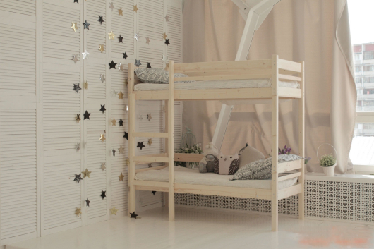 Двухъярусная кровать Дональд станет настоящей находкой для комнаты, где проживают двое детей. Такое изделие поможет правильно обустроить комнату, а также сэкономит достаточно места, предоставив больше возможностей для игр. Кровать изготовлена и натурального дерева и прекрасно впишется в любой интерьер комнаты. Сборка производится одним ключом, который поставляется в комплекте, а соединения типа «болт-бобышка» гарантируют устойчивость и безопасность всей кровати.