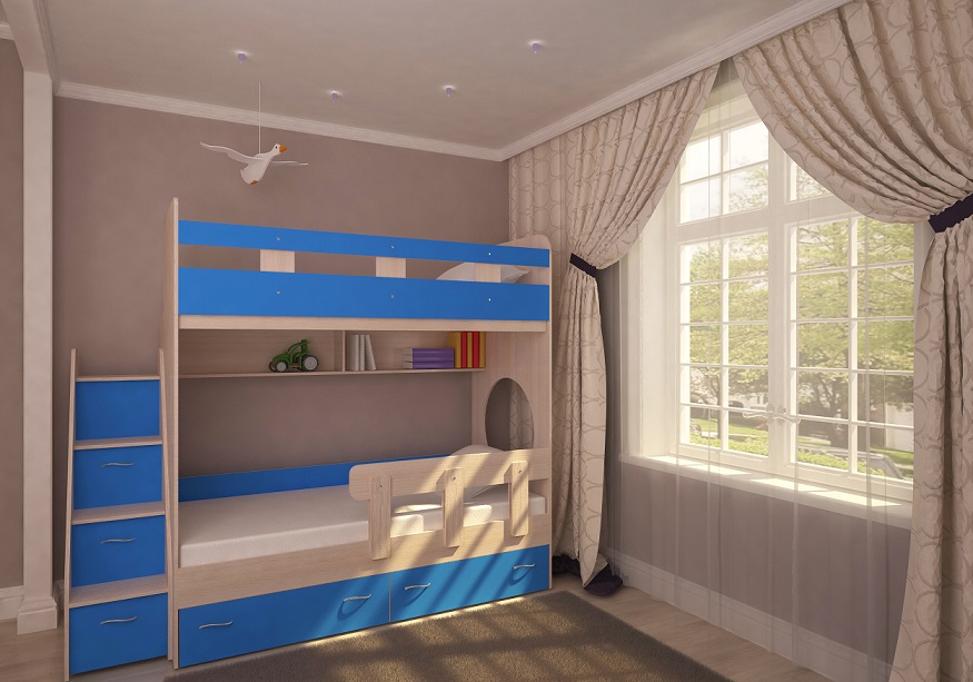 Матрацы в стоимость не входят. Бортик на нижнее спальное место в комплектацию не входит. Возможно изготовление фасадов в двух цветах.