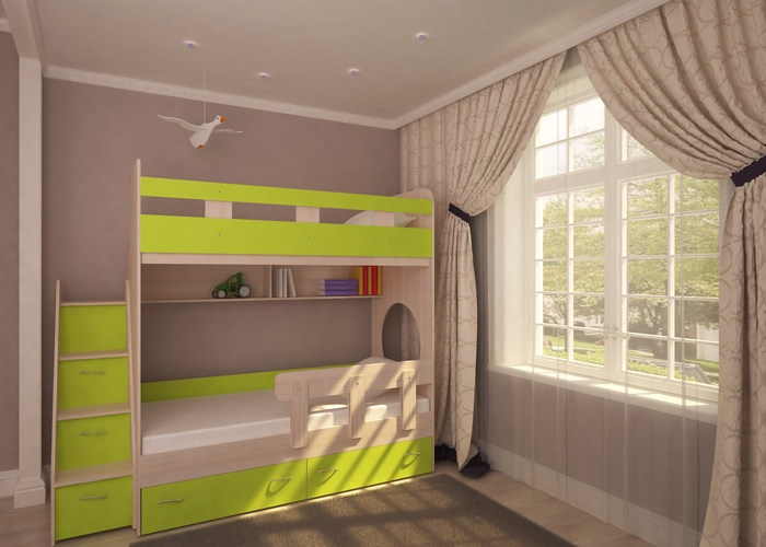 Комплекс при сборке универсальный. Отличный вариант для двух детей. Яркая и функциональная кровать Юниор-1 будет радовать детей и взрослых.