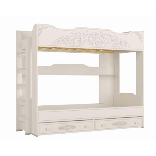 Кровать двухъярусная Ассоль АС-25 превосходит по внешнему виду все обычные двухъярусные кровати. Интересный узор, белый цвет станут мечтой ваших детей. Кровать как из сказки.