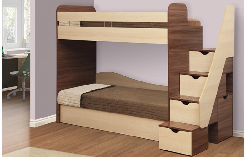 Кровать двухъярусная Адель-3 станет отличным решением для комнаты, где проживают двое детей. Изделие поможет сэкономить место, оставляя больше простора для игр. Верхний ярус кровати комплектуется мягким пружинным блоком и оснащен защитной боковой спинкой, не позволяющей ребенку упасть во время сна или игр на 2-ом этаже. Нижний ярус кровати, так же комплектуется мягким пружинным блоком с откидным механизмом, который образует ящик для спального белья или любых других вещей. Лестница на 2-й этаж имеет дополнительный функционал в виде ящиков для белья, игрушек или любых других вещей.