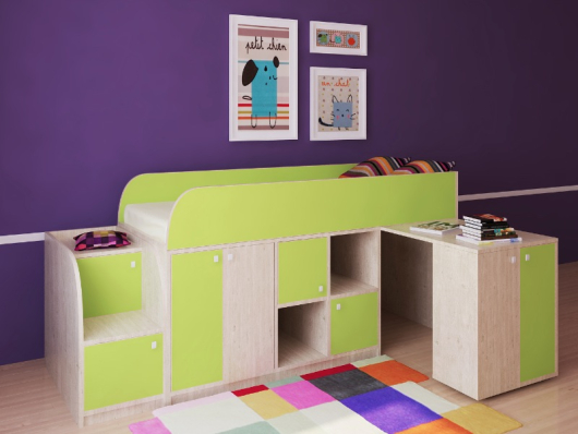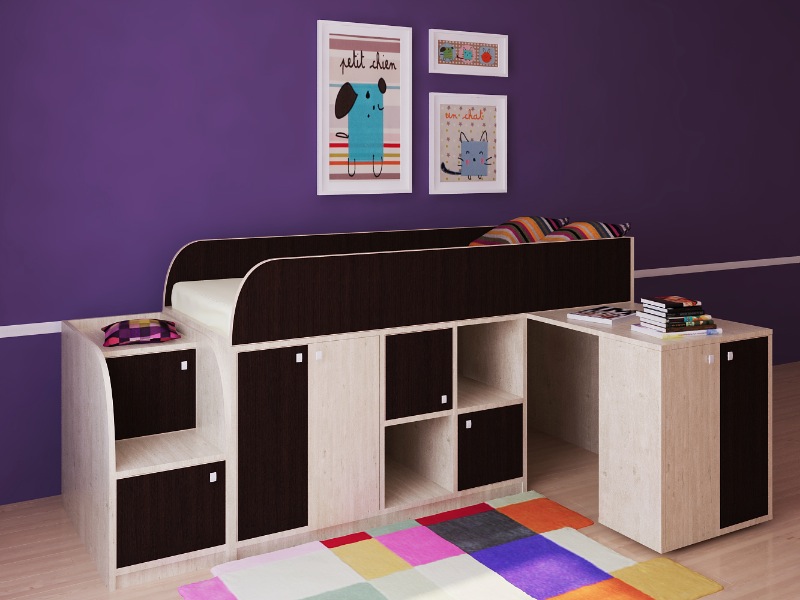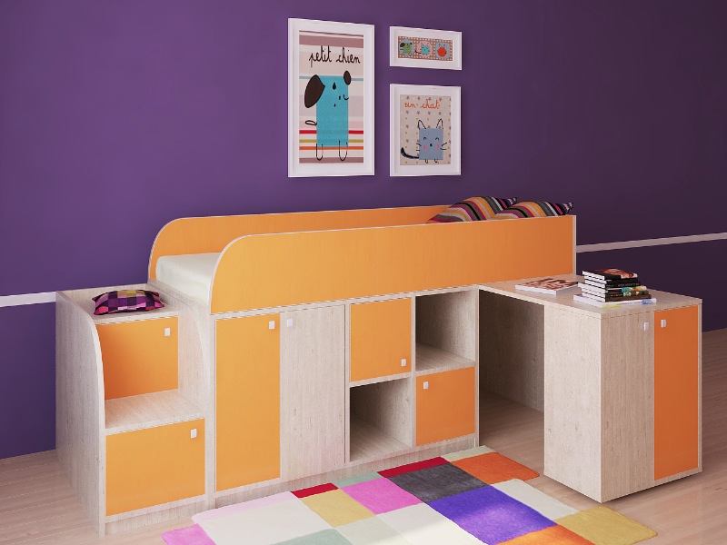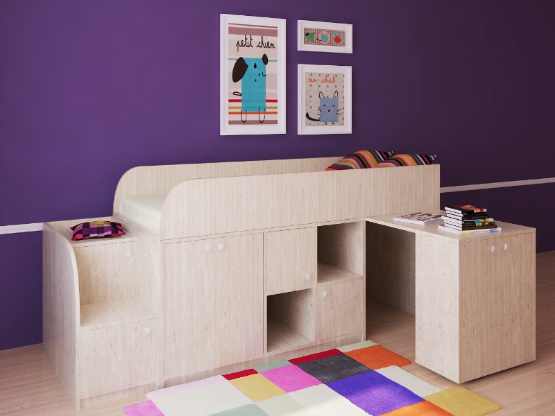 Астра мини - это интересное сочетание комфорта, функционала и качества. Невысокая кровать, широкое спальное место, рабочая зона и безопасные ступеньки!
