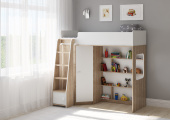 Кровать-чердак Легенда B601.1 поможет обустроить идеальную детскую комнату. Комфортное спальное место даст возможность отлично поспать и набраться сил. Под спальным местом находится вместительный угловой шкаф для хранения одежды и белья и стеллаж для размещения различных предметов. Световое окно прямоугольной формы - дополнительное освещение, элемент для игры и возможность родителям наблюдать за ребенком. В комплект входит прямая лестница для безопасного подъема и спуска, а также она имеет небольшое место для хранения с дверкой и ручкой плавной формы. Дополнительной безопасностью для ребенка является мягкий противоударный кант.