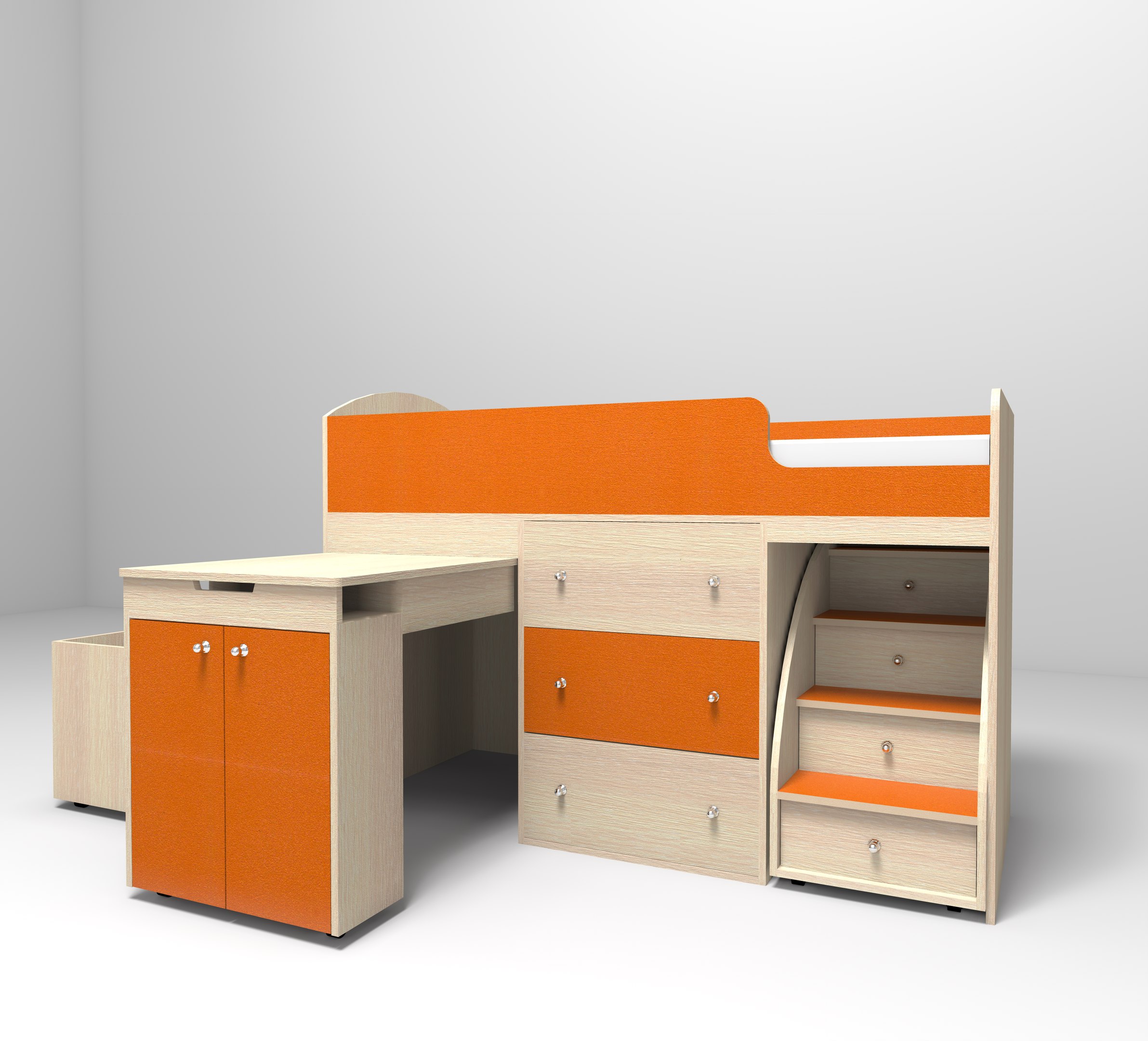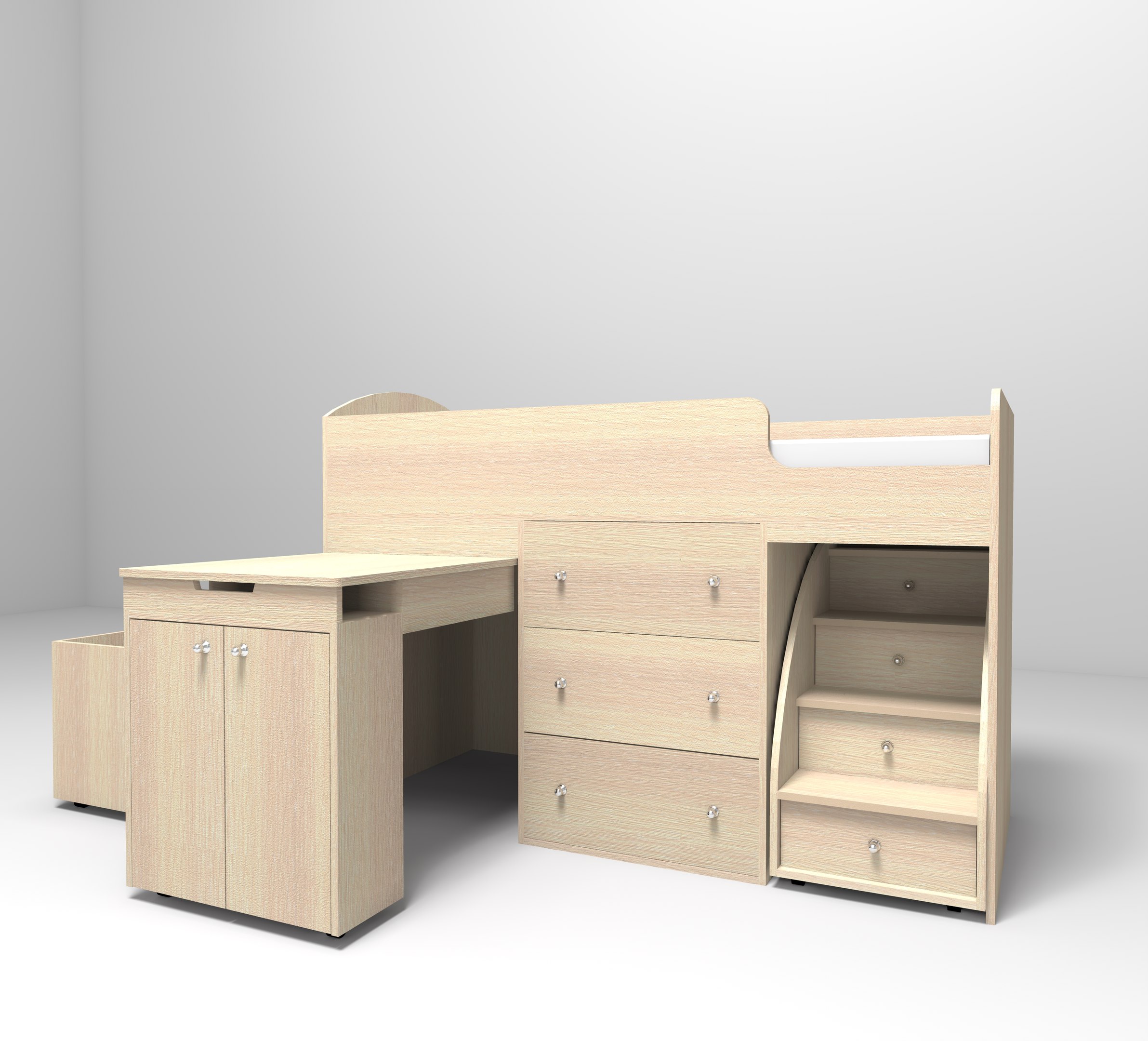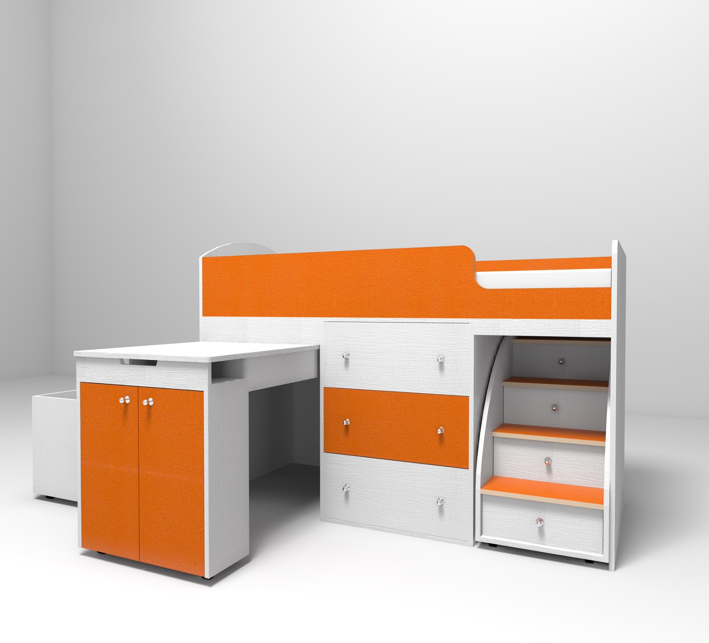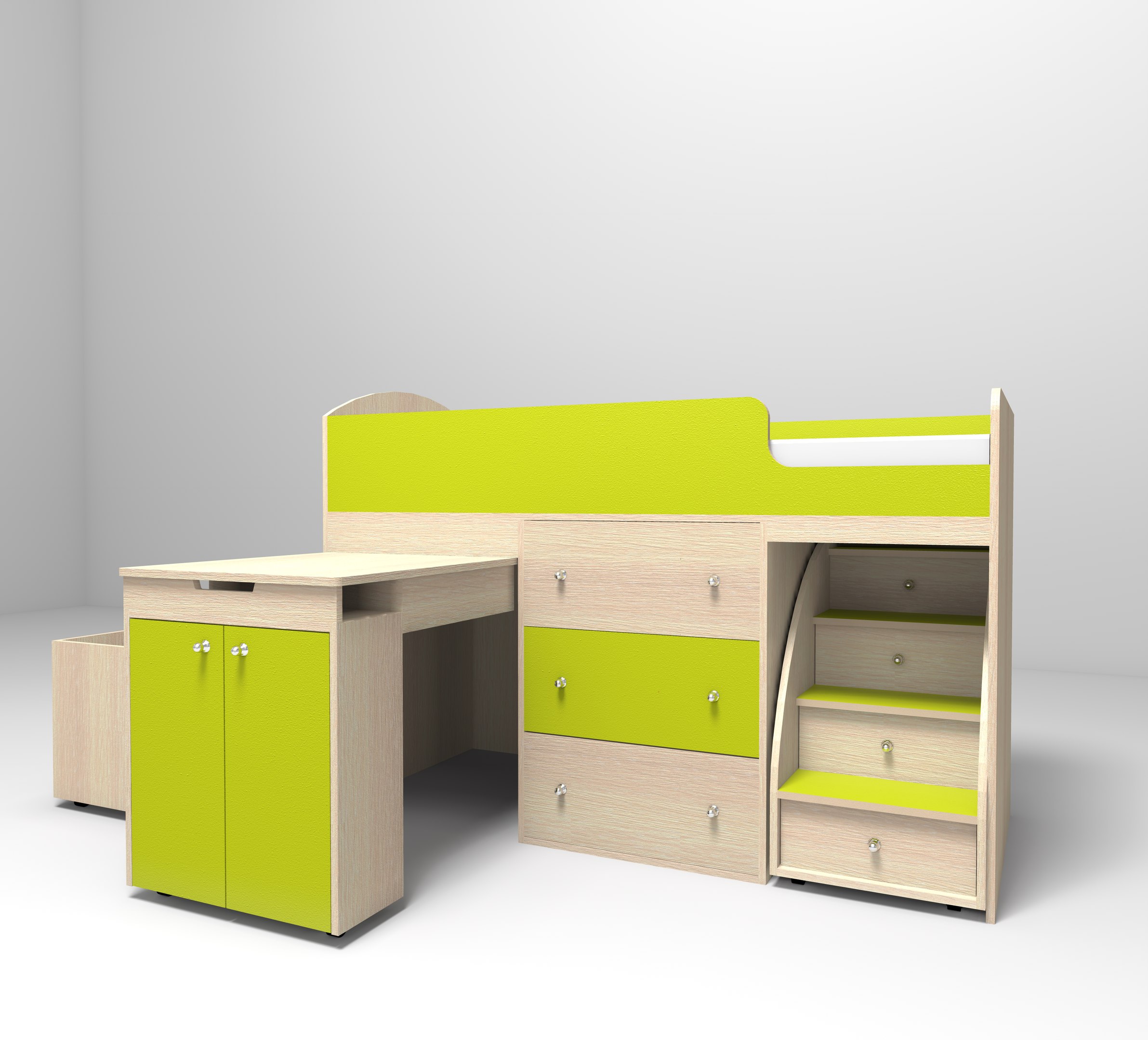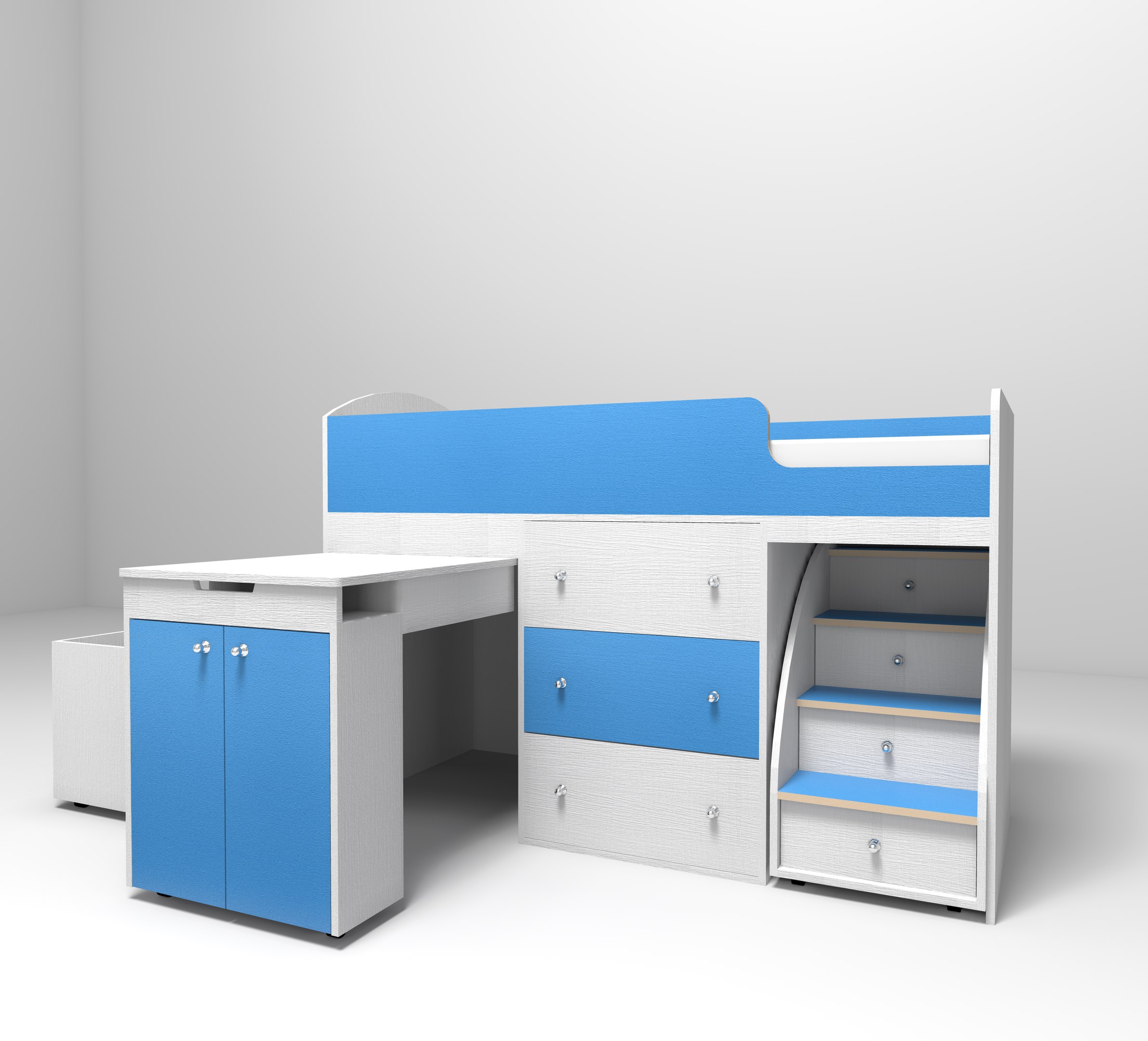 Детская кровать-чердак Малыш представляет собой многофункциональный комплекс, включающий удобную кровать Малыш, вместительный комод, выдвижной столик с подстольным ящиком для письменных принадлежностей и торцевым шкафчиком для книжек, безопасную лестницу с 4 выдвижными ящиками и ящик для игрушек на колёсах, который легко убирается под кровать. Детская кровать Малыш выполнена без острых углов, в производстве применяются сертифицированные, безопасные материалы и фурнитура. Привлекательная цена, в сравнении с приобретением аналогичных отдельных модулей, и гарантийный срок 18 месяцев делают кровать-чердак Малыш популярной среди покупателей мебели для малышей. Детская мебель Малыш предназначена для ребёнка от 2,5 до 8 лет. Мебельная фабрика Ярофф (г. Ярославль) производит мебель Малыш в различных цветах, ручки выполнены в виде диснеевских мультперсонажей, за счёт этого она прекрасно подходит и для мальчиков, и для девочек. Возможно лево и правосторонне исполнение детского комплекса, определяется при сборке. На детскую кровать Малыш (Ярофф) действует гарантия 18 месяцев.