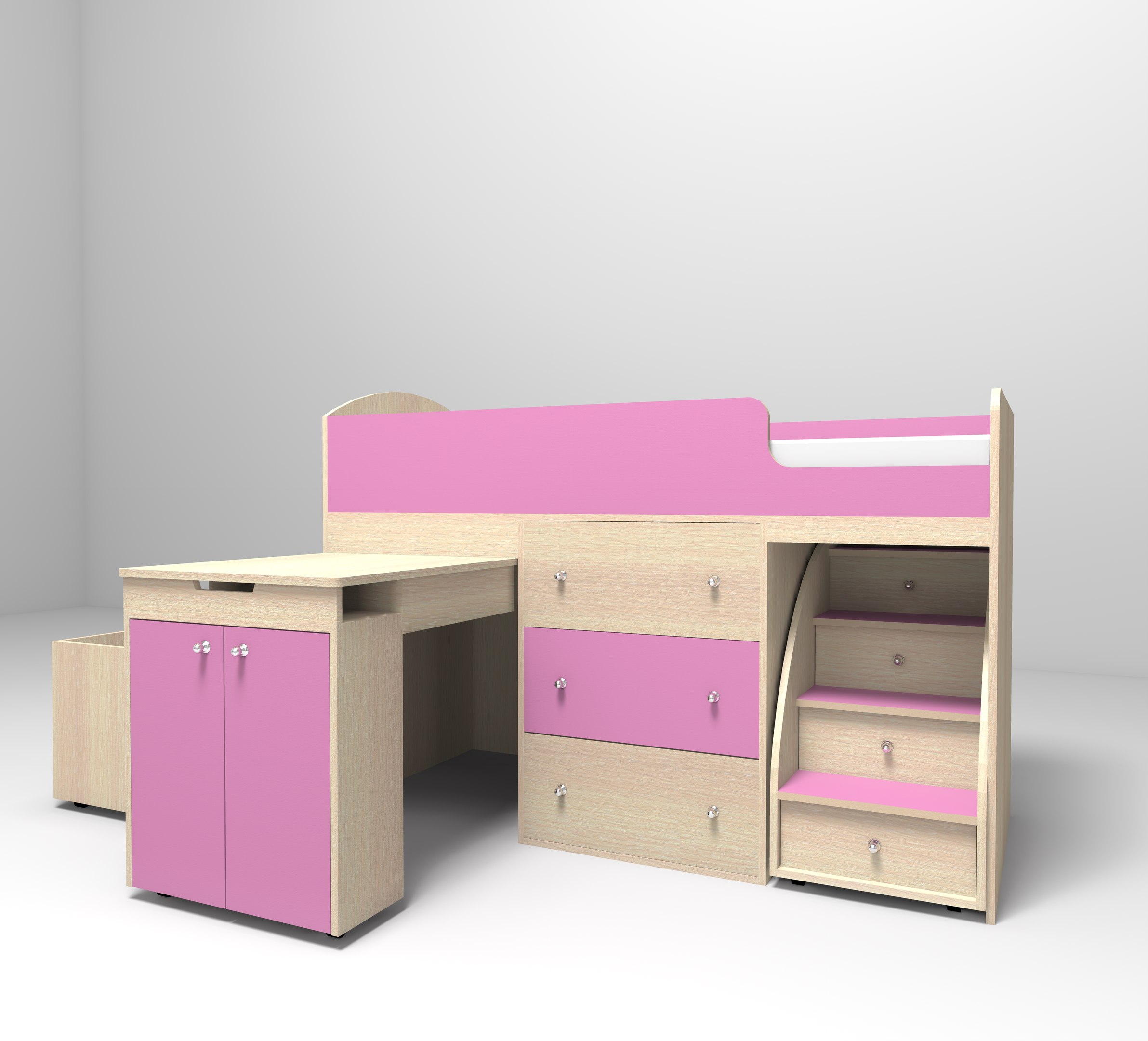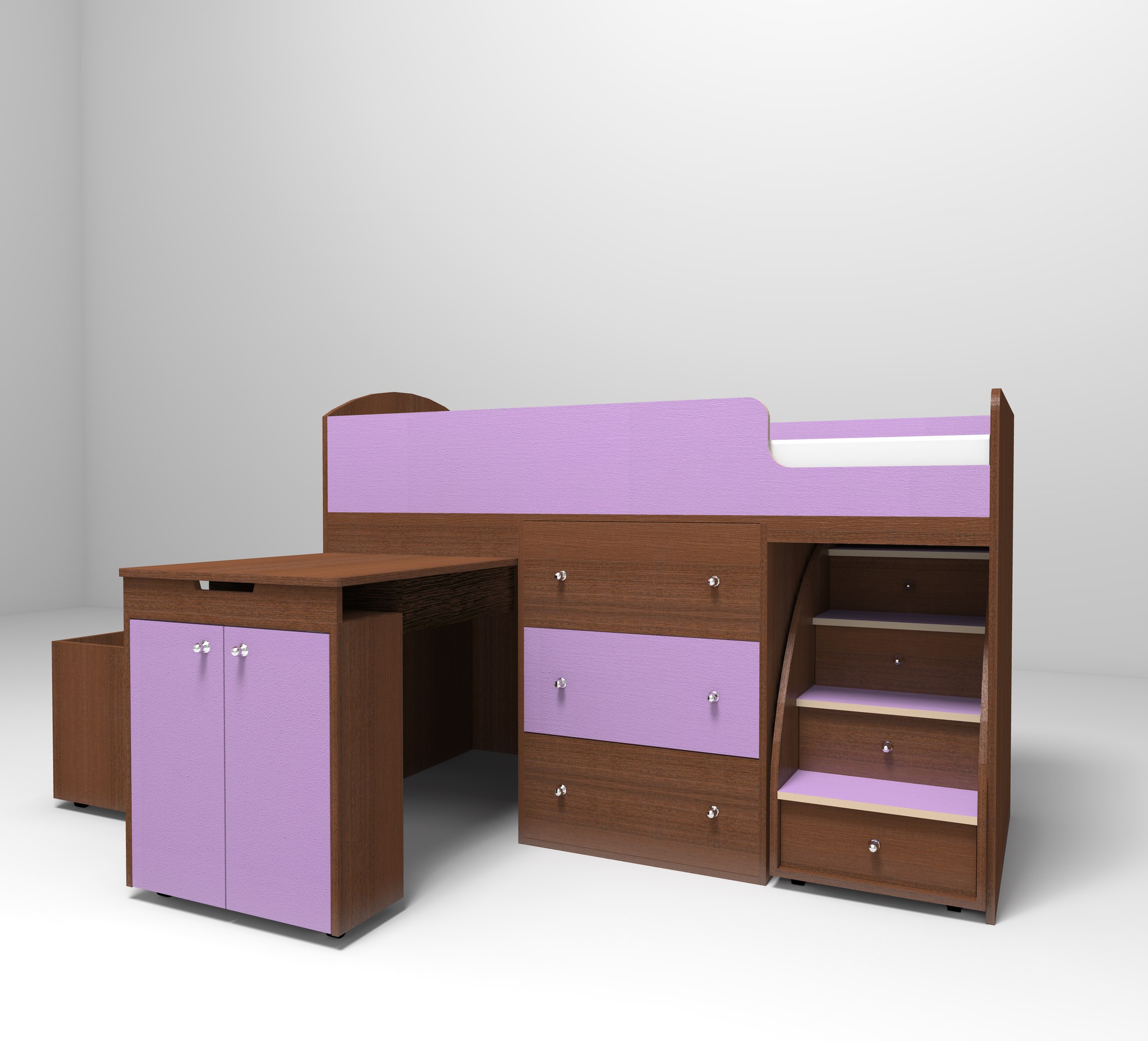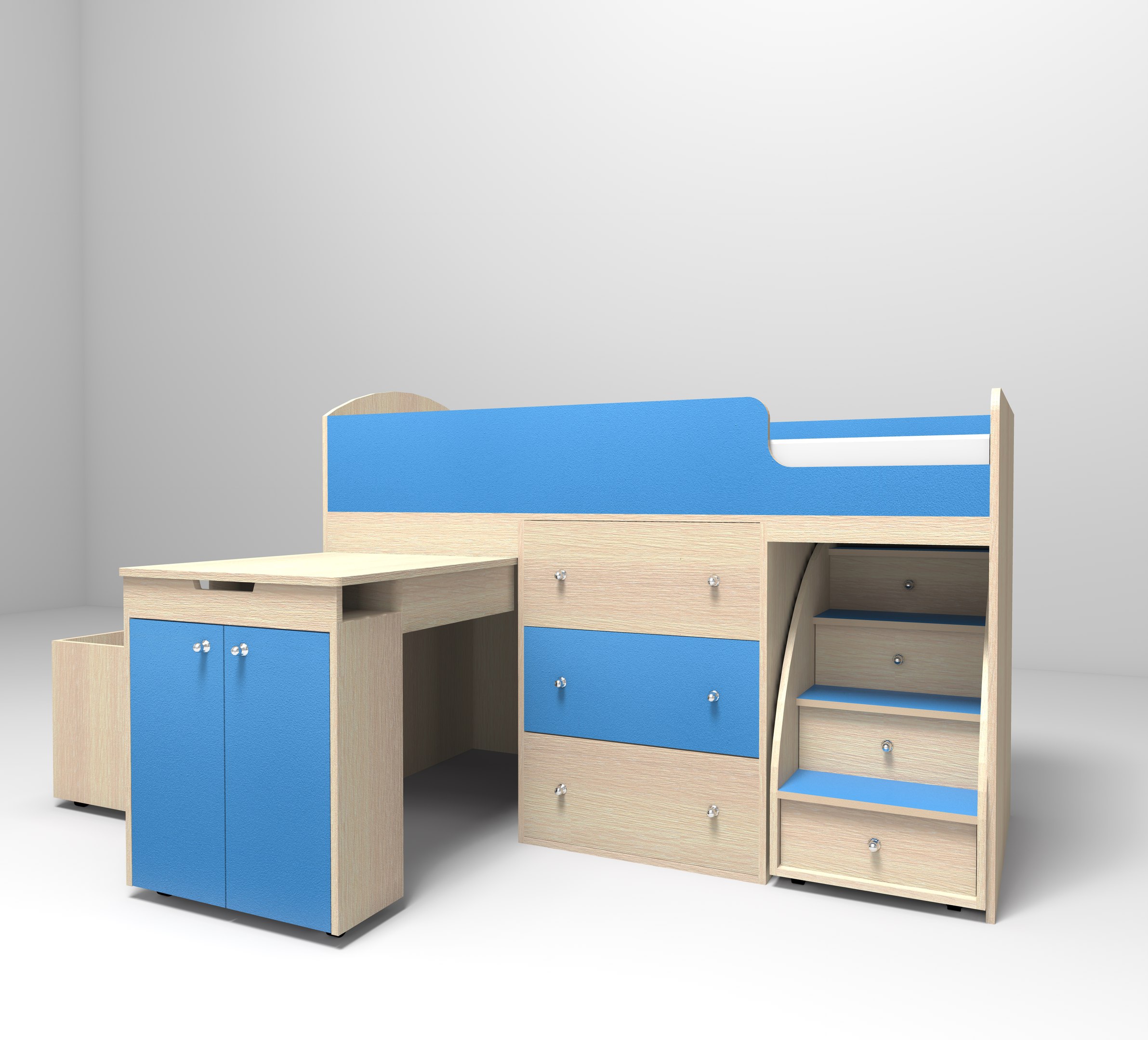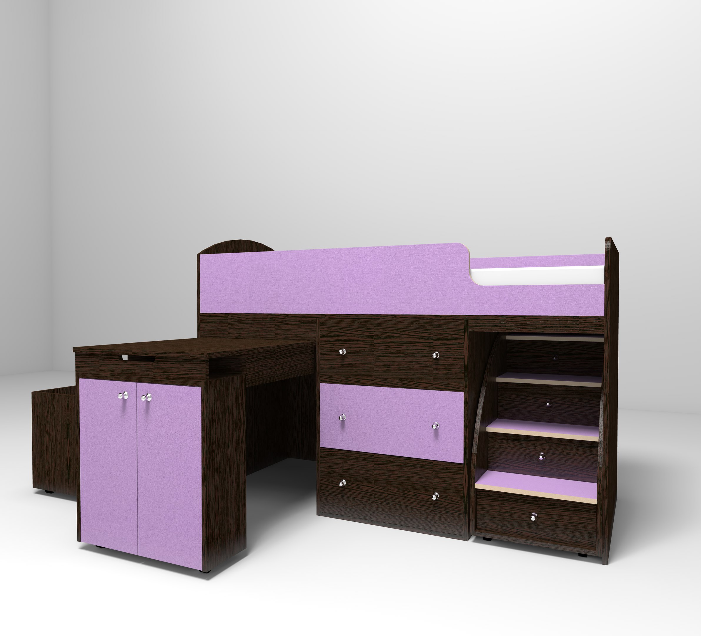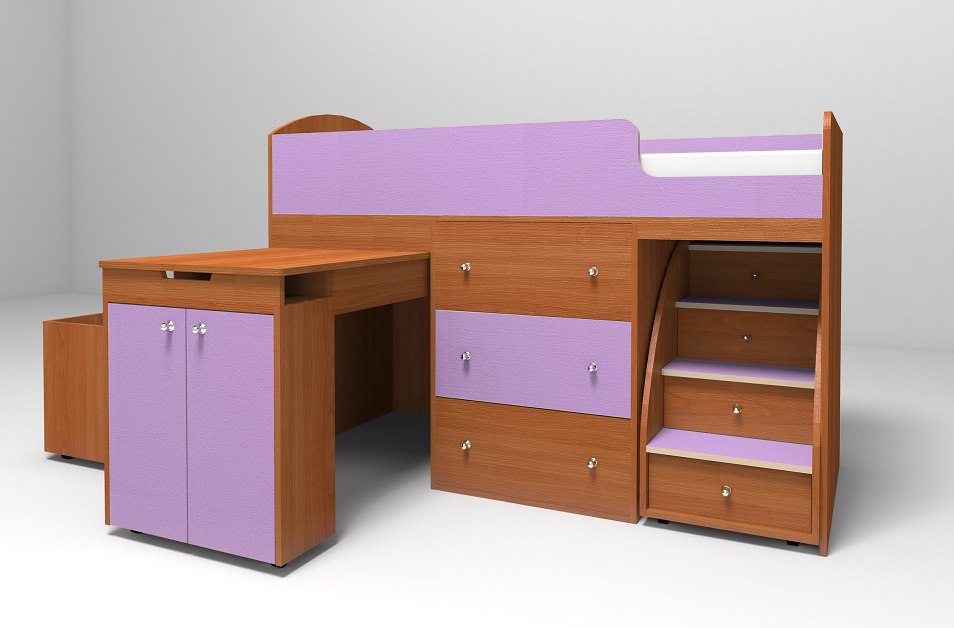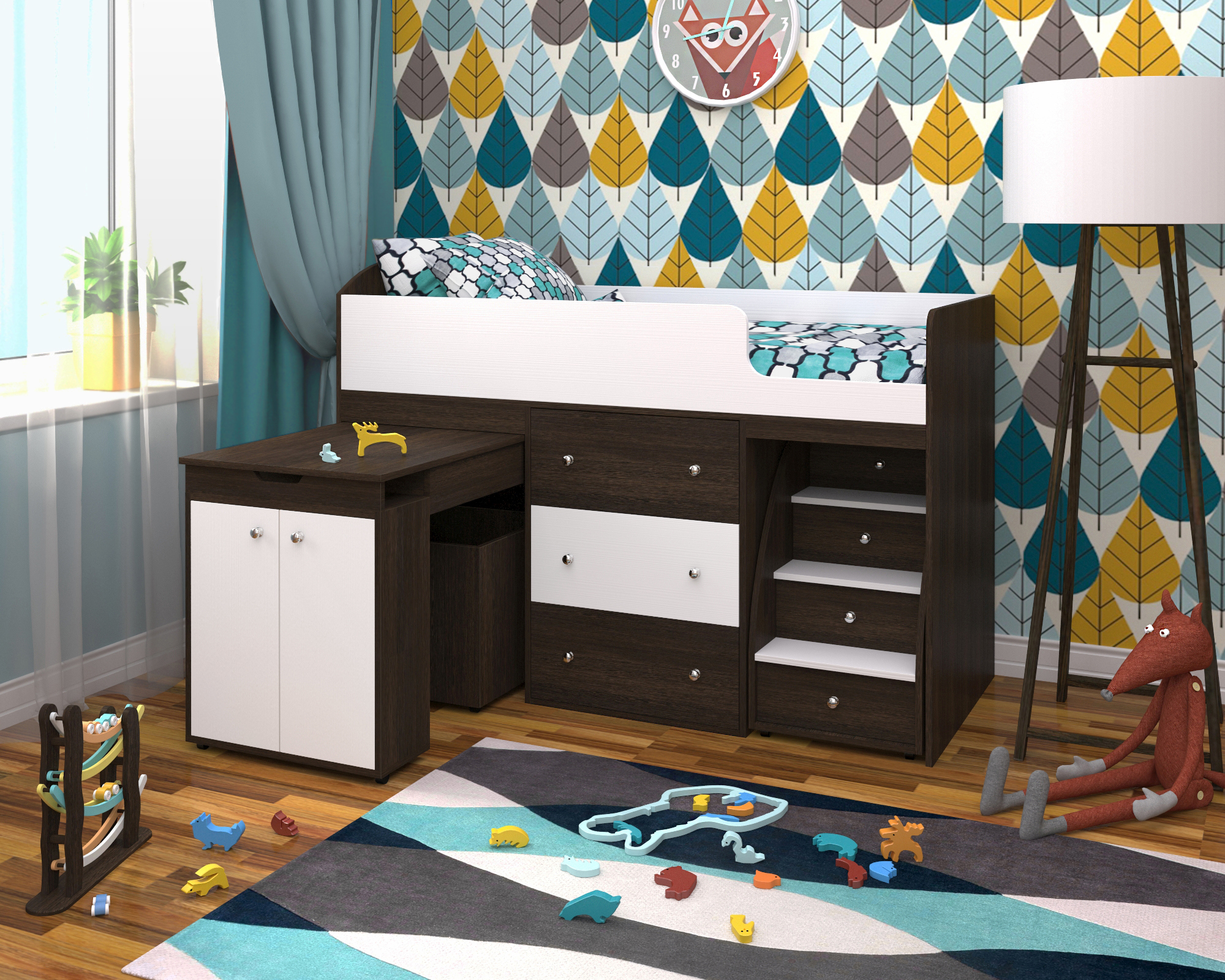 Кровать чердак Малыш с увеличенным спальным местом прослужит ребёнку до подросткового возраста. Уже начиная с 2 лет, вы можете перевести ребёнка на эту кроватку. Тут есть всё самое необходимое, ящики для игрушек, стол для занятий и борт безопасности. Отличный вариант для семей, которые располагаются в одной комнате с малышом. С кроватью-чердаком Малыш у ребёнка появится свой уютный уголок. -