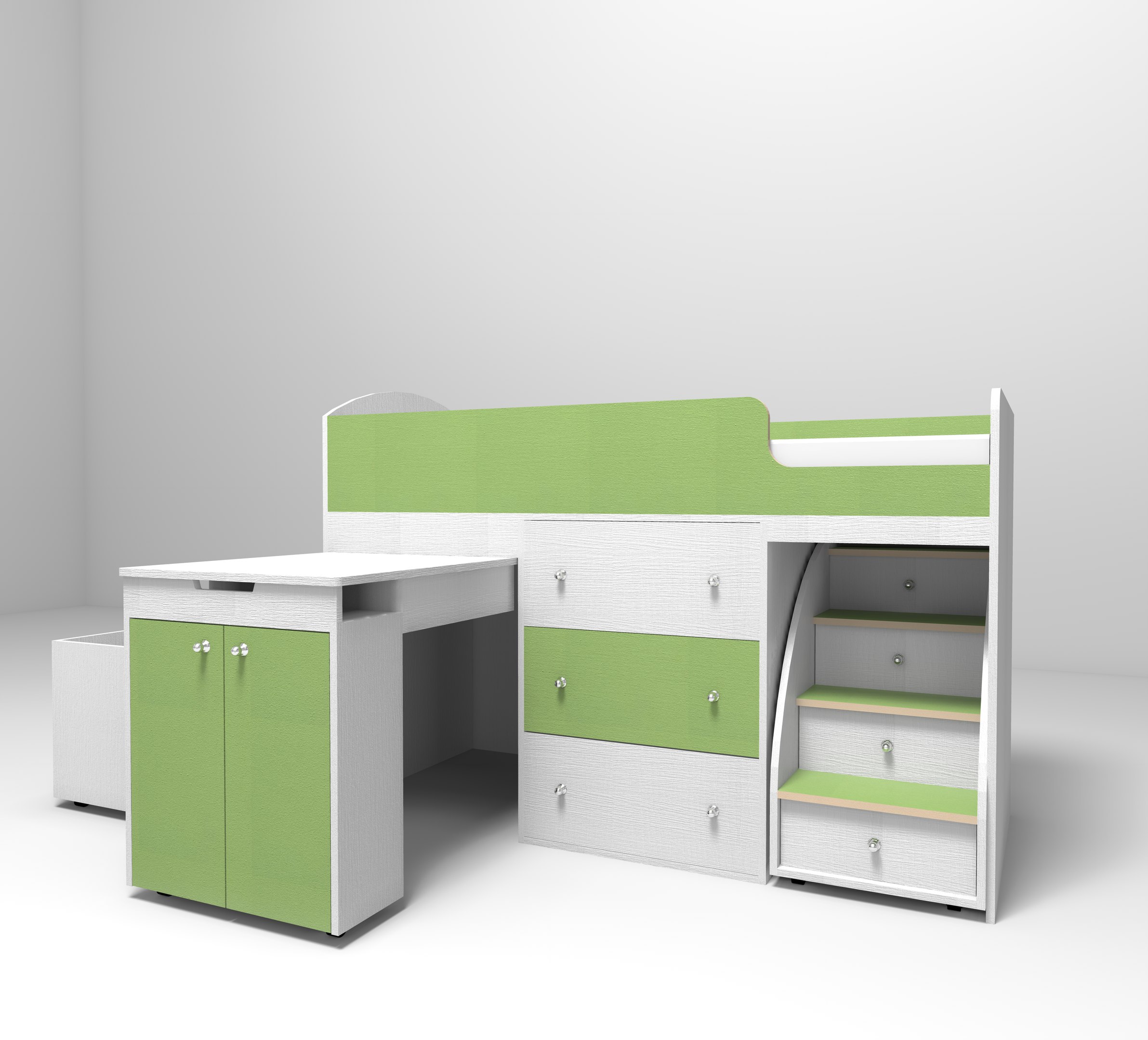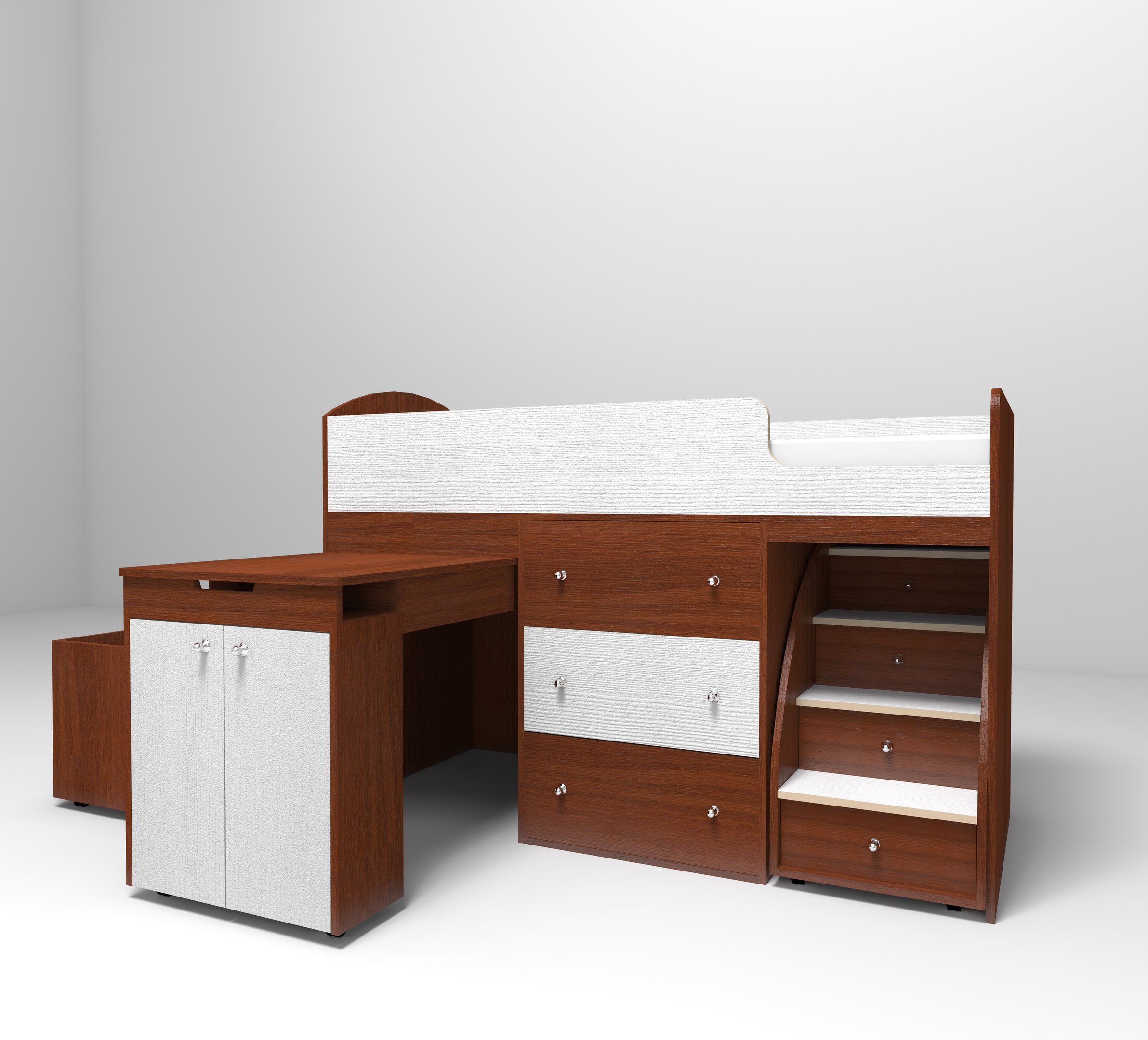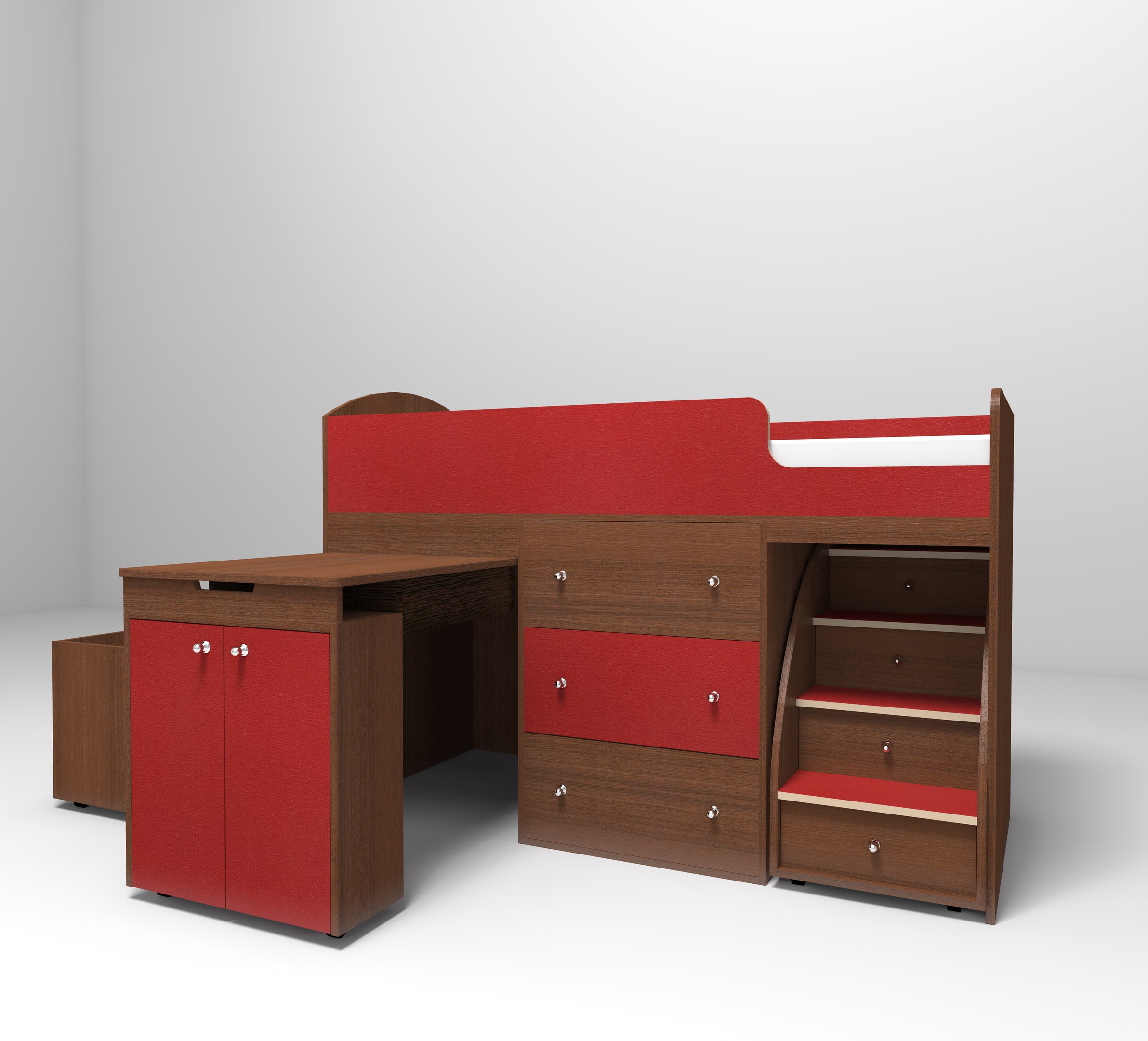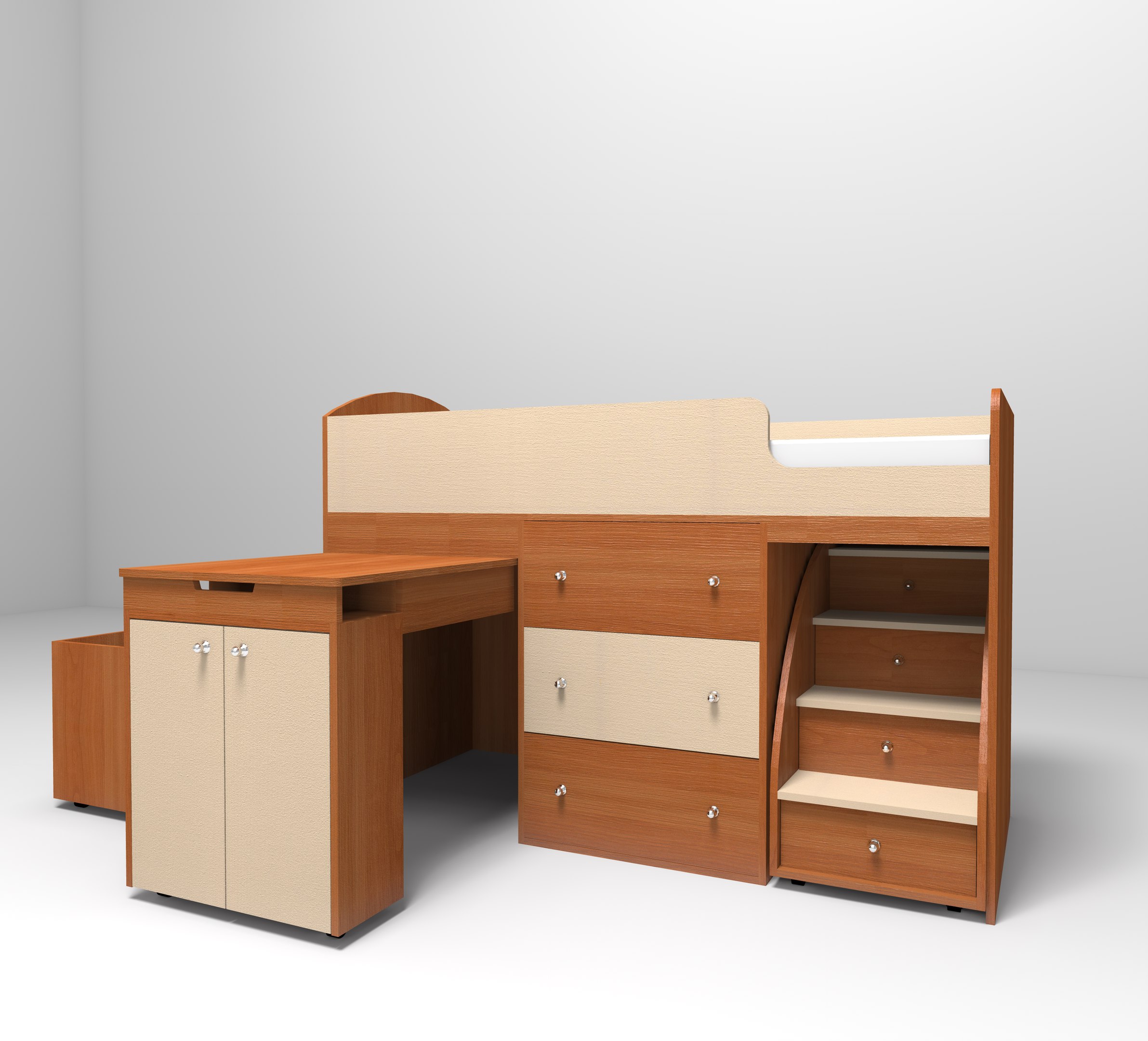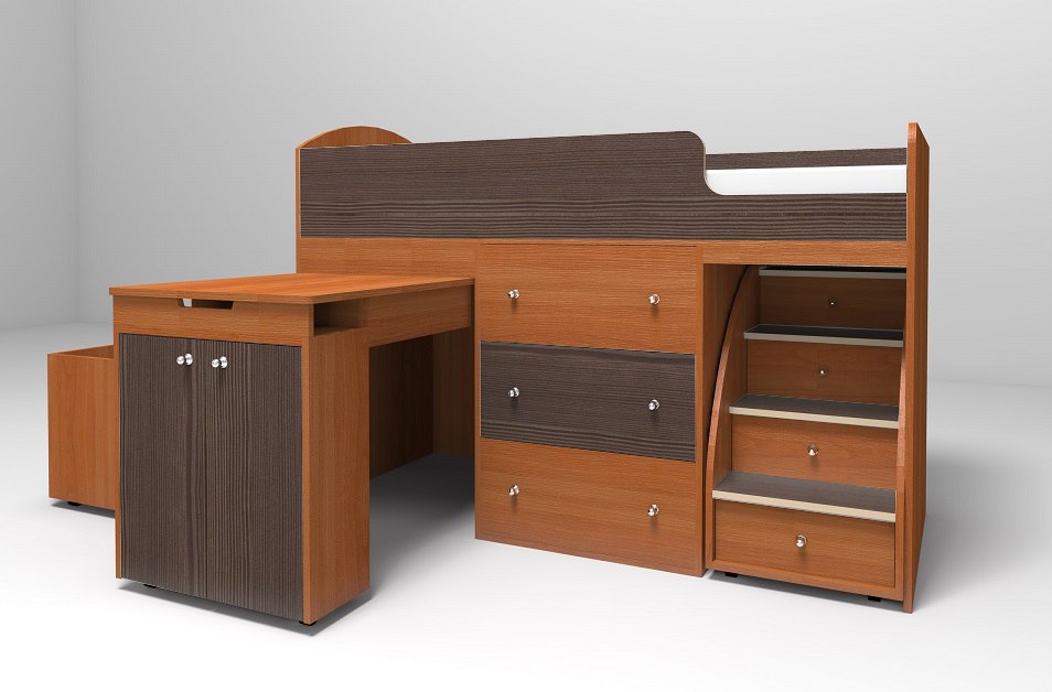 Кровать чердак Малыш с увеличенным спальным местом прослужит ребёнку до подросткового возраста. Уже начиная с 2 лет, вы можете перевести ребёнка на эту кроватку. Тут есть всё самое необходимое, ящики для игрушек, стол для занятий и борт безопасности. Отличный вариант для семей, которые располагаются в одной комнате с малышом. С кроватью-чердаком Малыш у ребёнка появится свой уютный уголок. -