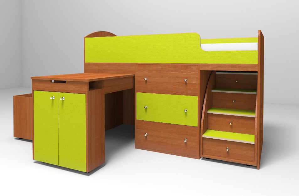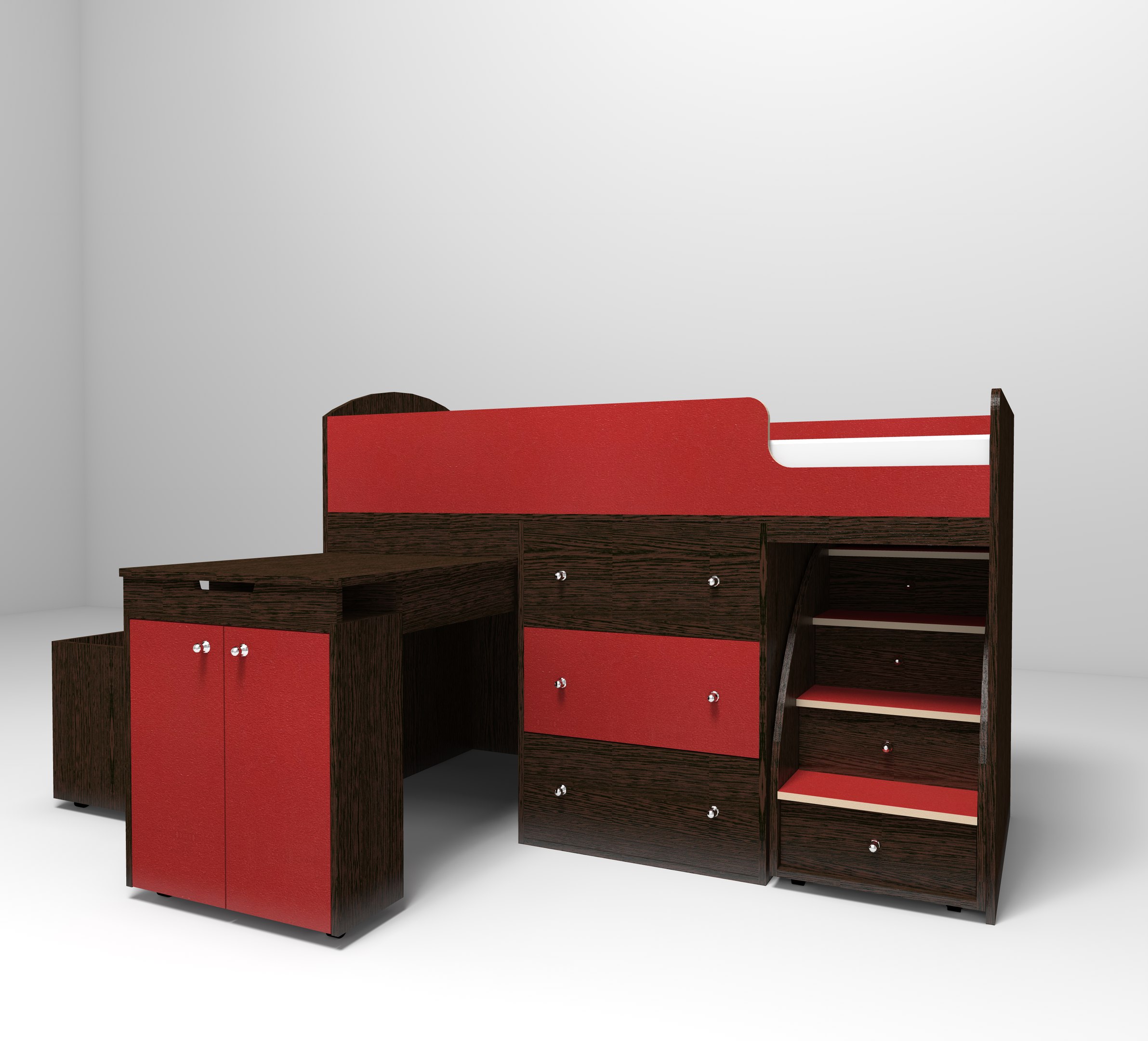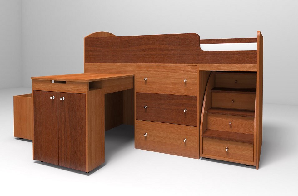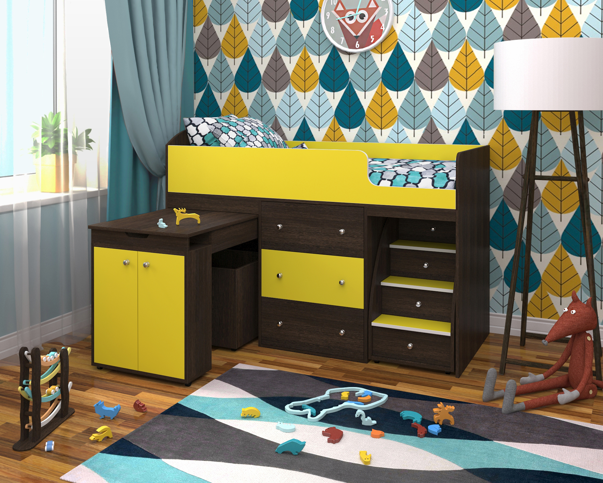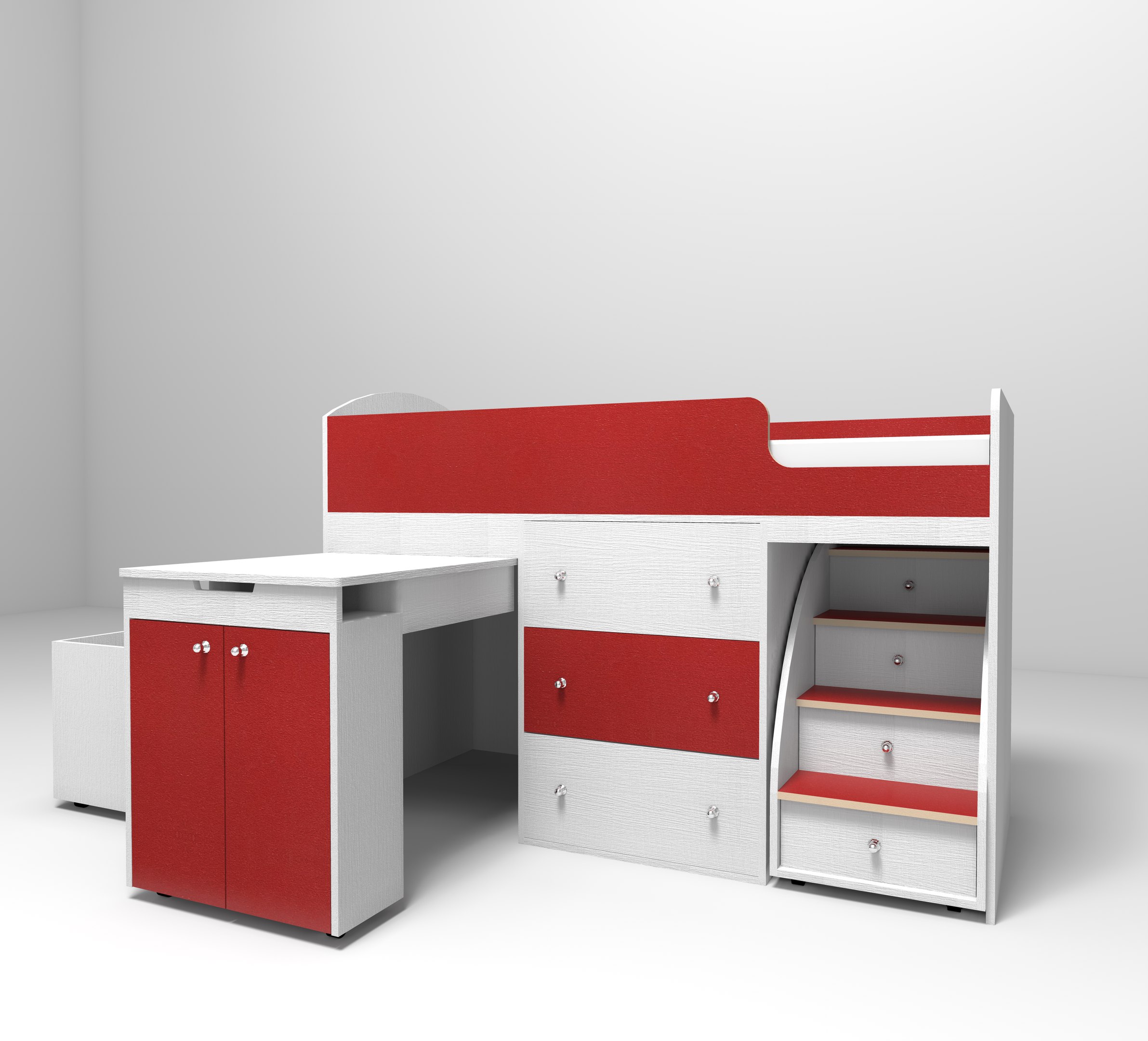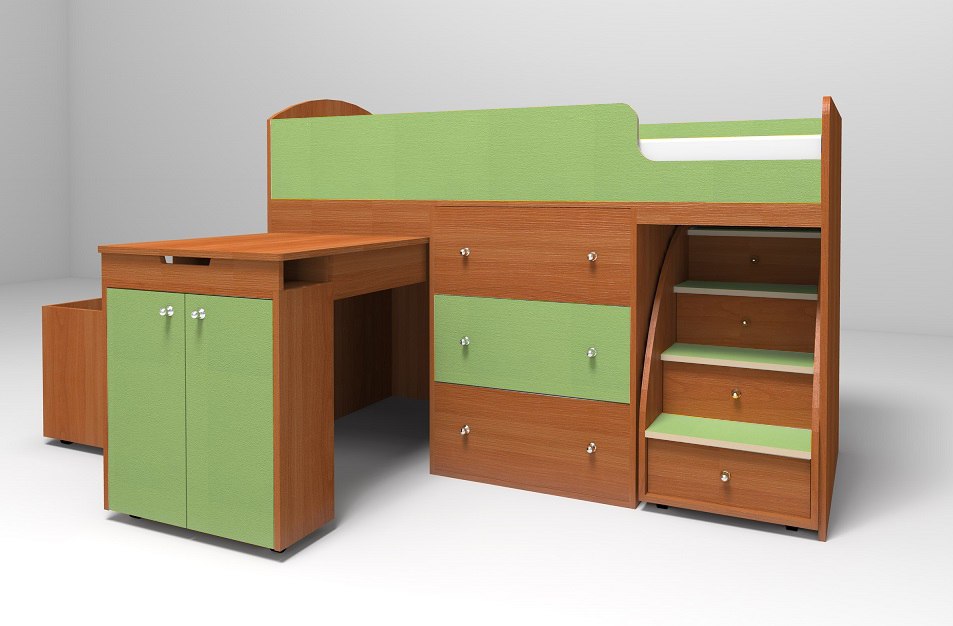 Кровать чердак Малыш с увеличенным спальным местом прослужит ребёнку до подросткового возраста. Уже начиная с 2 лет, вы можете перевести ребёнка на эту кроватку. Тут есть всё самое необходимое, ящики для игрушек, стол для занятий и борт безопасности. Отличный вариант для семей, которые располагаются в одной комнате с малышом. С кроватью-чердаком Малыш у ребёнка появится свой уютный уголок. -
