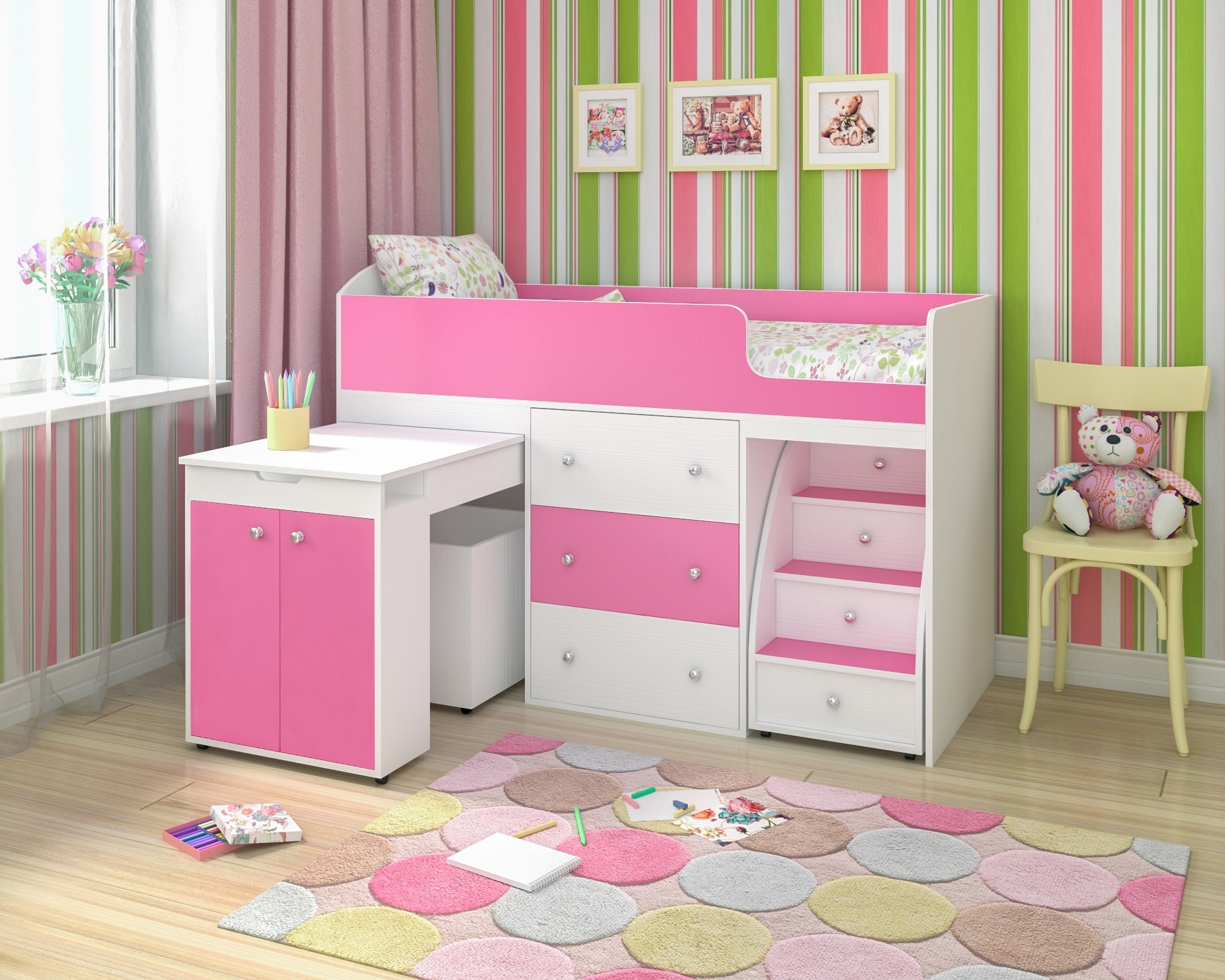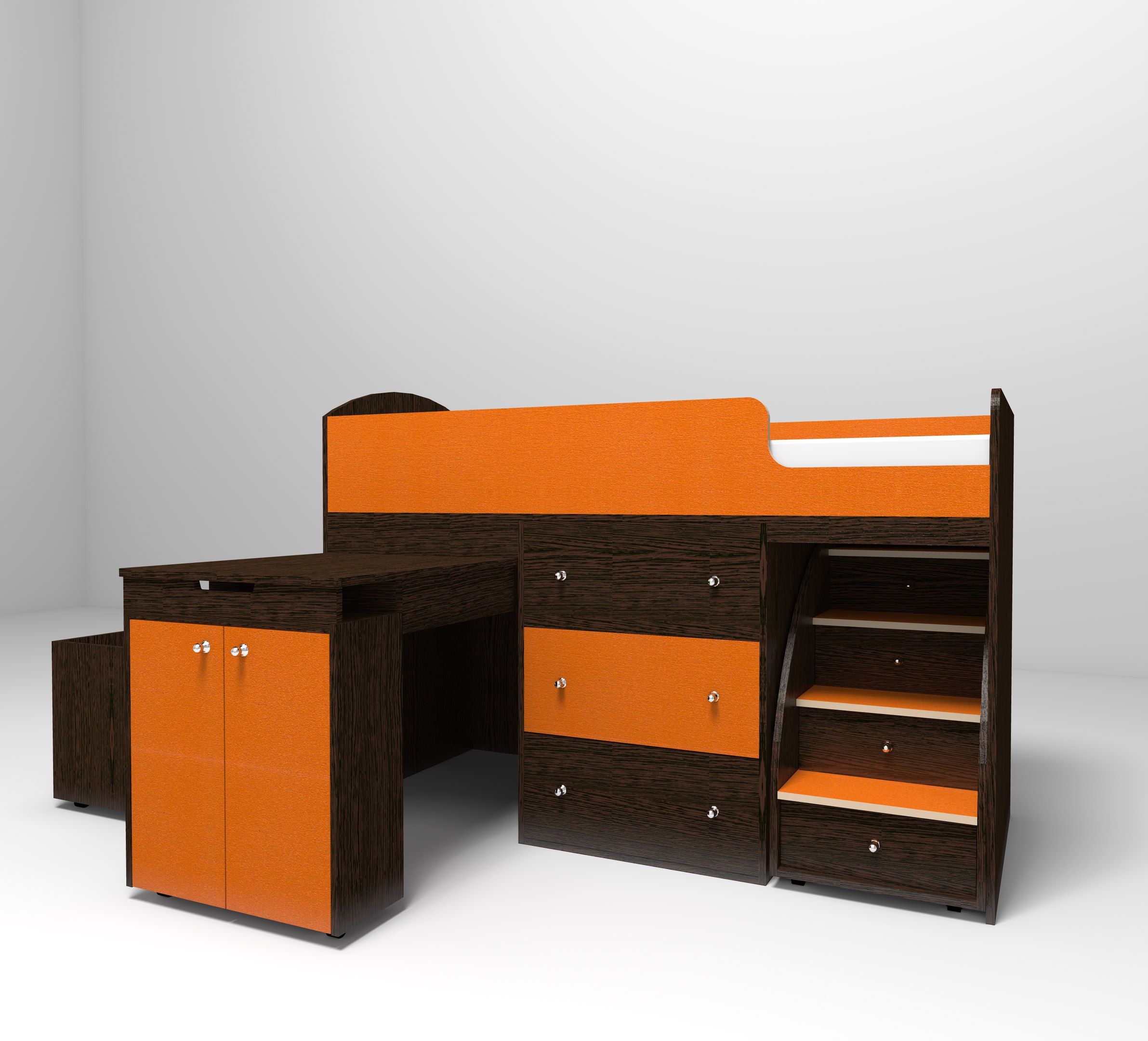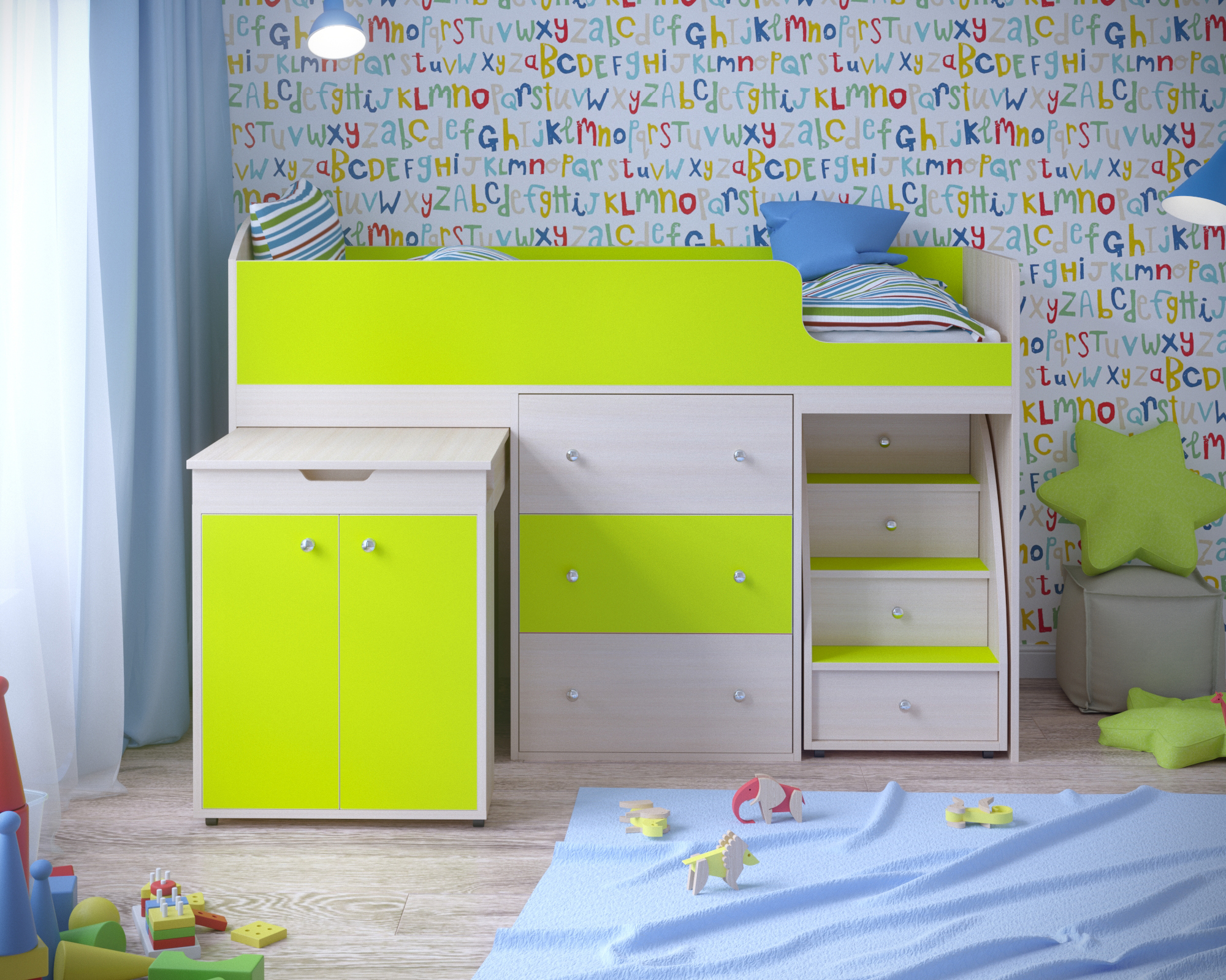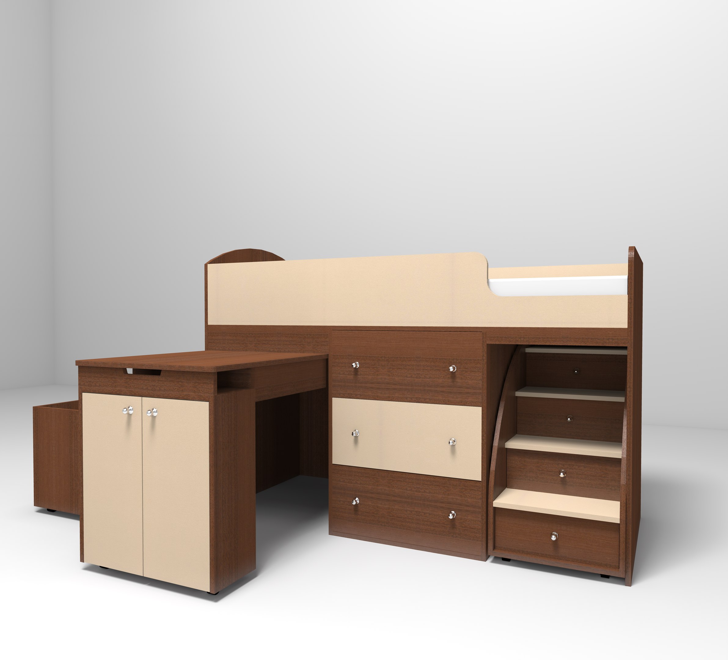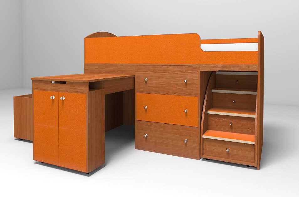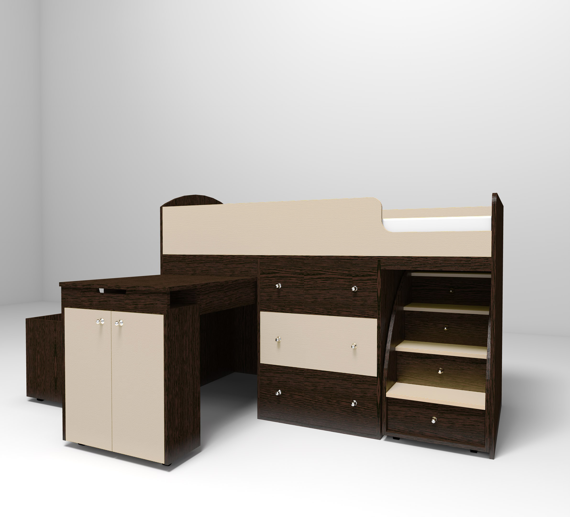 Кровать чердак Малыш с увеличенным спальным местом прослужит ребёнку до подросткового возраста. Уже начиная с 2 лет, вы можете перевести ребёнка на эту кроватку. Тут есть всё самое необходимое, ящики для игрушек, стол для занятий и борт безопасности. Отличный вариант для семей, которые располагаются в одной комнате с малышом. С кроватью-чердаком Малыш у ребёнка появится свой уютный уголок. -