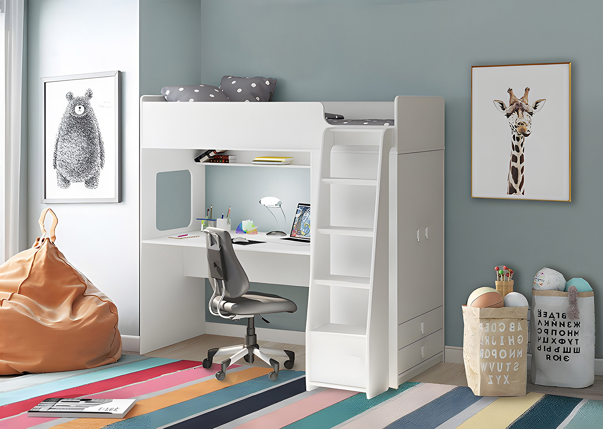Детская Буратино 1 отличное решение для детской комнаты. В кровать-чердак Буратино 1 есть всё для обустройства детского пространства. Есть шкаф для одежды и письменный стол. Обратите внимание на безопасную лестницу, по ней ребёнок сможет подниматься спать без угрозы упасть. -