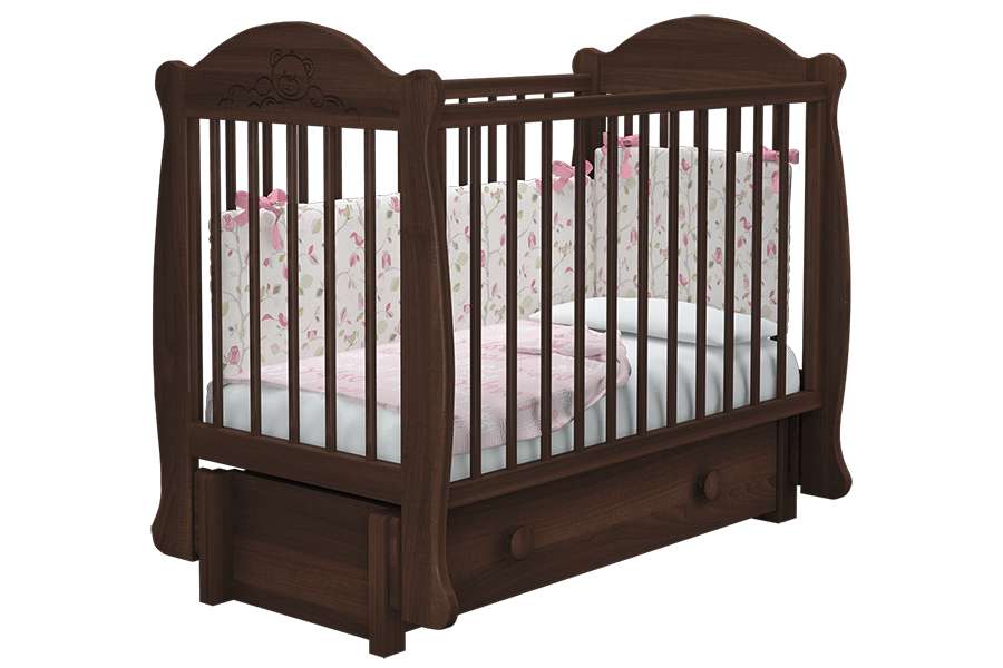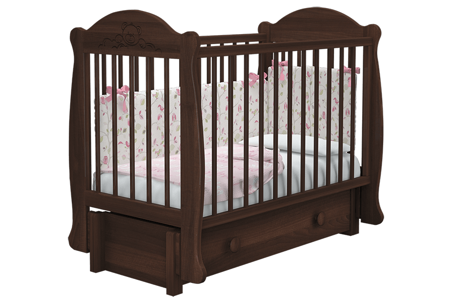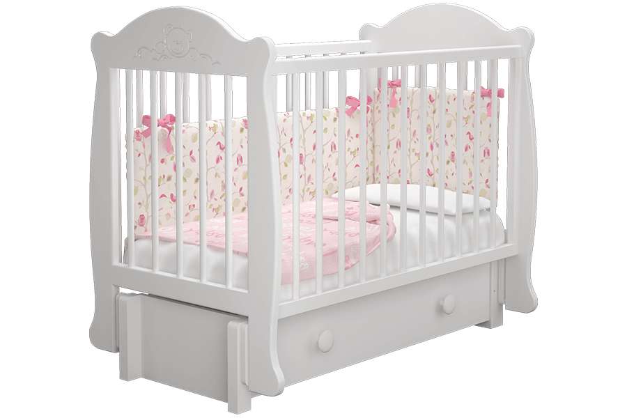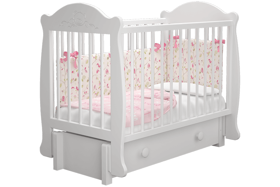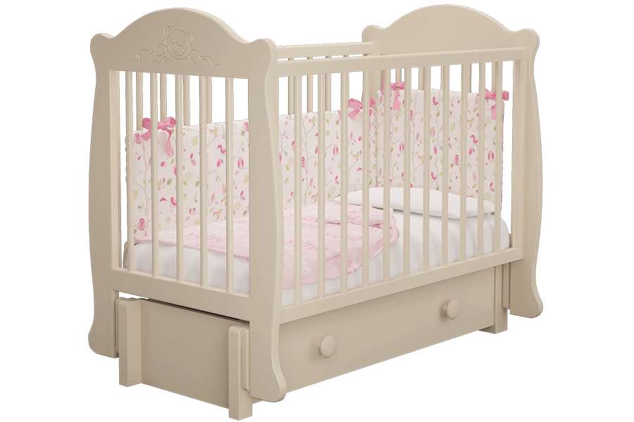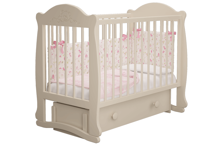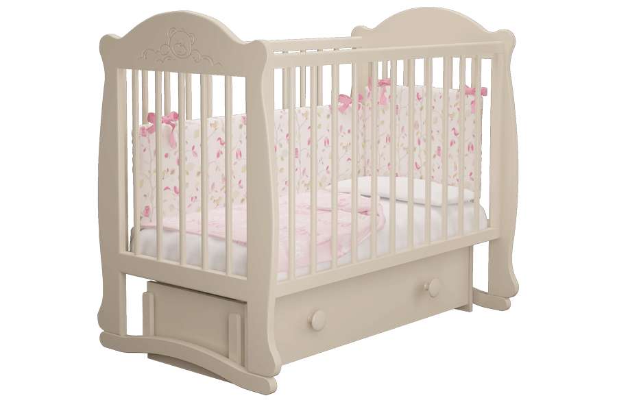 Кроватка детская Мишутка 3 станет отличным дополнением интерьера уютной детской комнаты. Изделие предоставит достаточно комфортное спальное место для новорожденного малыша. Особенностью кровати является наличие маятникового механизма универсального качания, который может быть собран либо для продольного, либо для поперечного качания. Также возможно снять ограждение, а при необходимости установить его на необходимую высоту. Вместительный выдвижной ящик пригодится для хранения детской одежды, пеленок, постельного белья или первых игрушек.