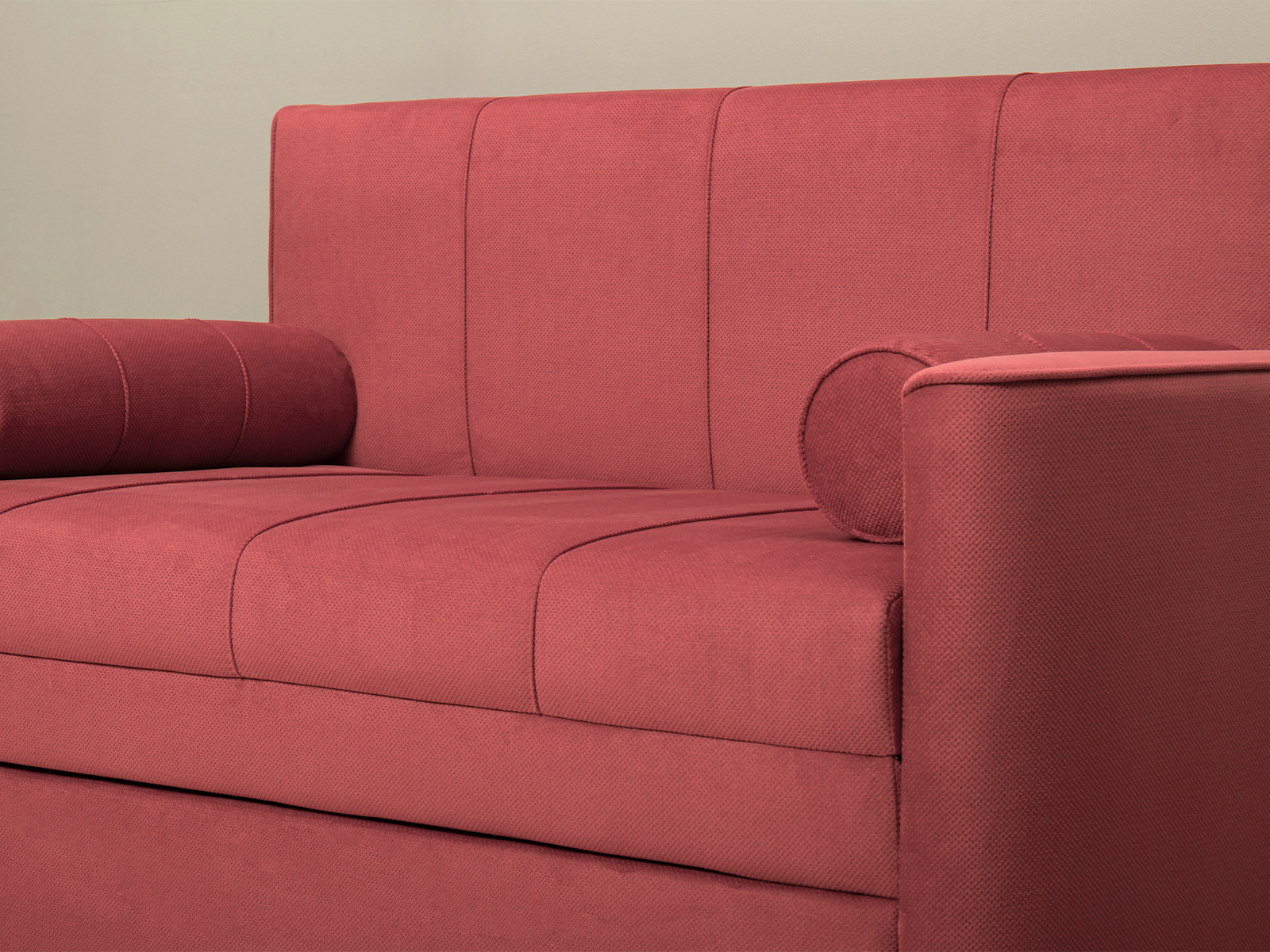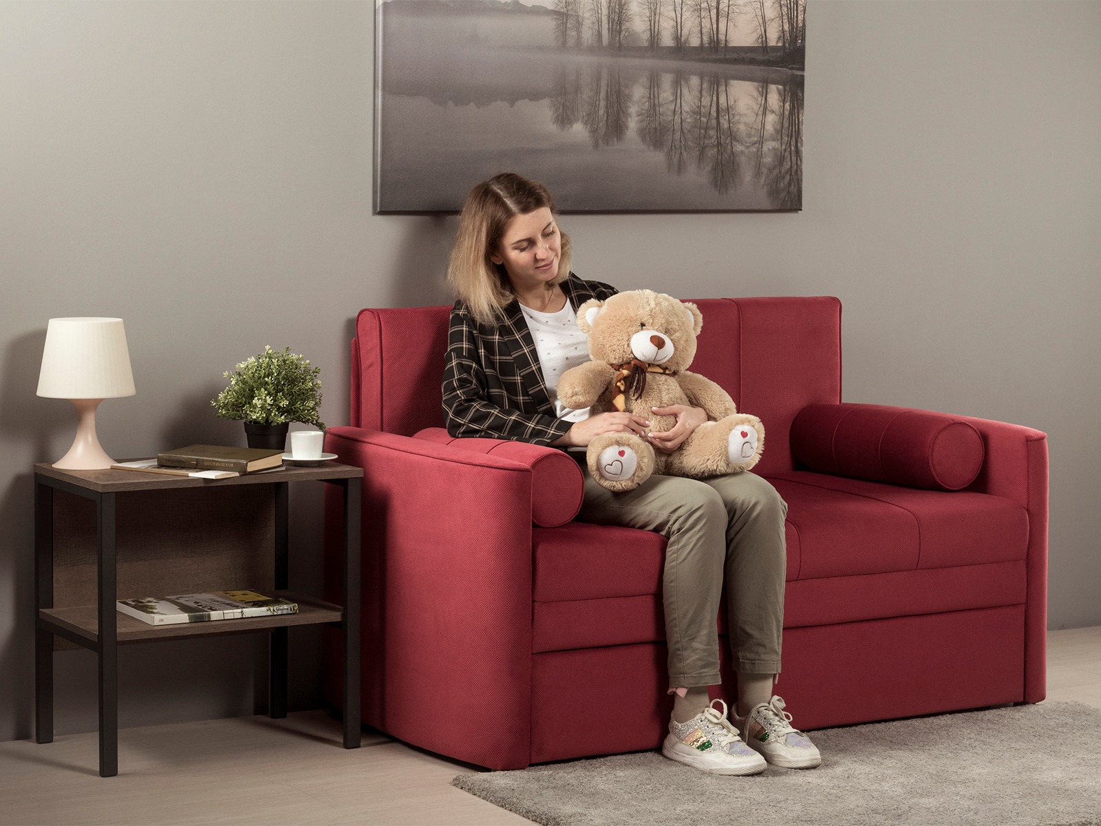 Диван-кровать Мелани Р (120) - компактный современный диванчик. Скругленные подлокотники с кантами подчеркивают эргономичность модели. Простой и надежный механизм трансформации на каждый день обеспечит удобным спальным местом ребенка или подростка. Может использоваться в качестве гостевого спального места для взрослого. Размер сп. места 195 х 120 см, есть небольшой бельевой ящик. Диван выполнен в мягком фактурном велюре. "Пальчиковый эффект" на ткани обивки выражен средне. Опоры - цвет черный, круглые, высота 25 мм., выполнены из высококачественного пластика. Прочность конструкции ножек обеспечена ребрами жесткости и внутренним креплением под фурнитуру.
