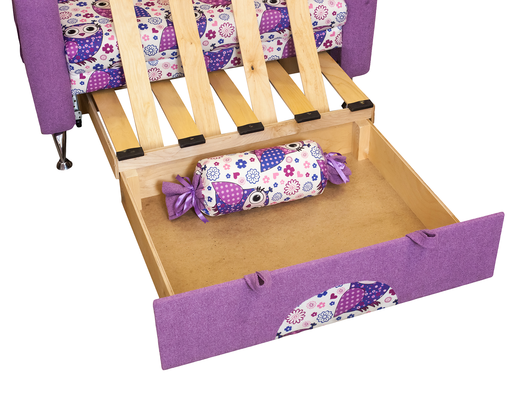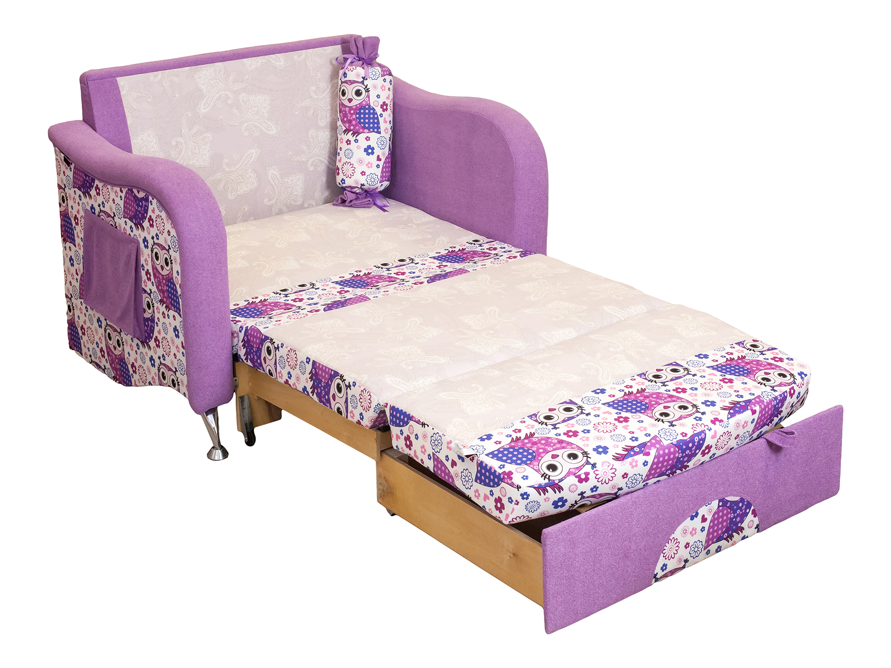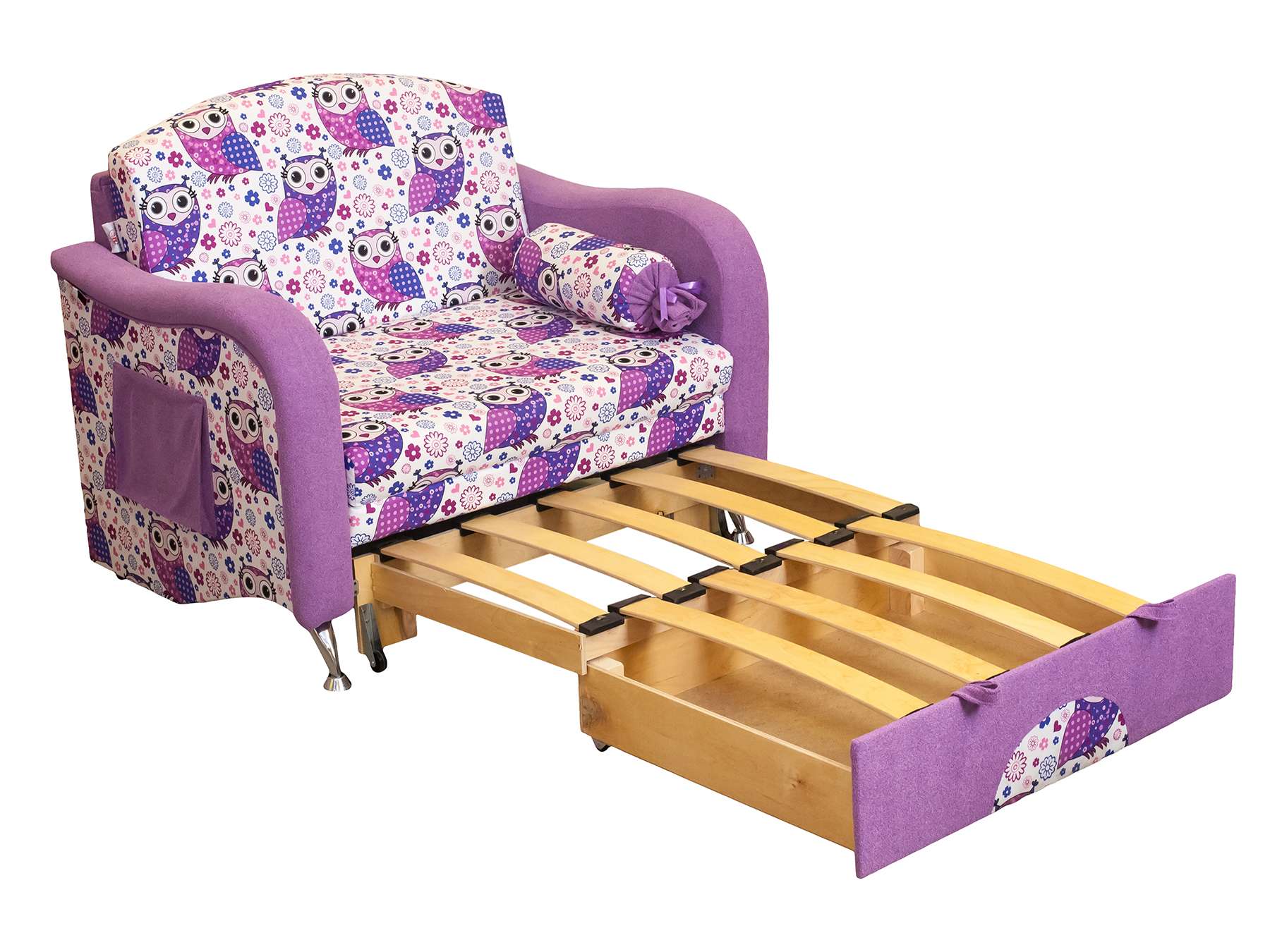 Детский диван Пчелка идеально впишется в любой интерьер детской комнаты. Данная модель выполнена в виде обычного удобного кресла с множеством цветочков на ткани, что обязательно порадует вашего ребенка. При помощи нескольких движений, небольшой диванчик трансформируется в полноценную детскую кровать. Такой диван поразит вас и ваших детей своей функциональностью, практичностью и ярким дизайном.