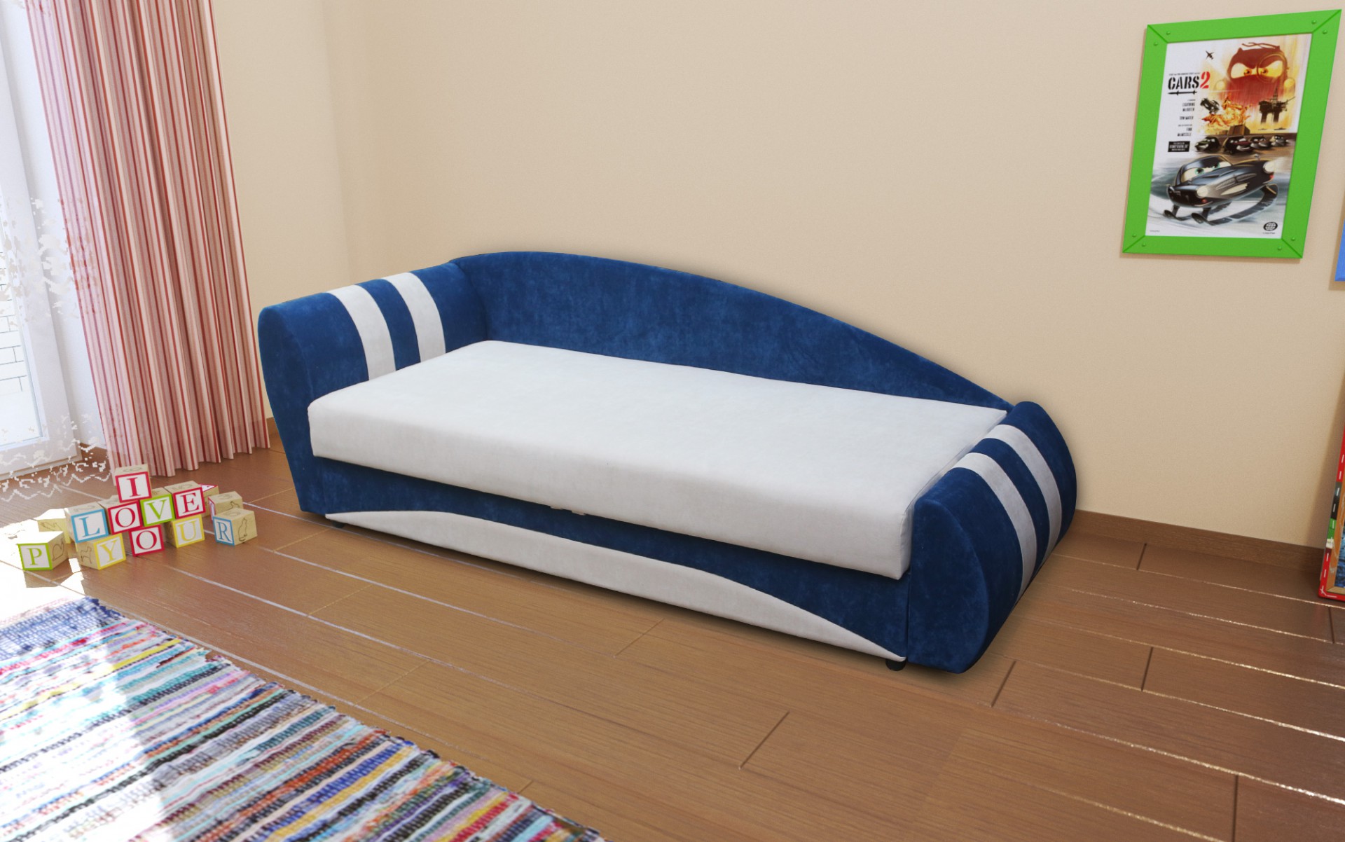 Диван Форсаж выполнен в ярком стиле эконом. Яркое изделие обязательно понравится юным ценителям быстрых машин. Диван предоставит достаточно комфортное спальное место, где можно расслабиться, отдохнуть и набраться сил после трудных дней. Данная модель не только идеально впишется в любой интерьер комнаты, но и поразит вас своей практичностью, функциональностью и ярким дизайном.