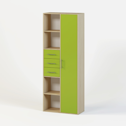 Размеры - Ш768 х Г350 х В2002 мм. Материал - ЛДСП. Стеллаж-шкаф с выдвижными ящиками Милана - оригинальная и весьма функциональная модель, которая отлично впишется в интерьер детской комнаты. Стеллаж-шкаф условно можно разделить на две части: открытое отделение - для книг и сувениров, закрытое - с полками для одежды и белья. Замечательная модель, которая вполне способна заменить громоздкий и не нужный шкаф.