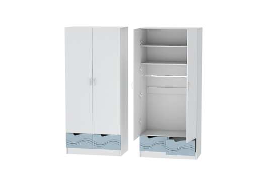 Шкаф 2-х створчатый Бриз МДФ станет отличным дополнением общего интерьера комнаты, а также поможет создать уютную атмосферу. За распашными дверьми находится штанга для вешалок-плечиков с одеждой, а антресольные полки и два выдвижных ящика пригодятся для бережного хранения сложенной одежды, различных аксессуаров и коробок с обувью.