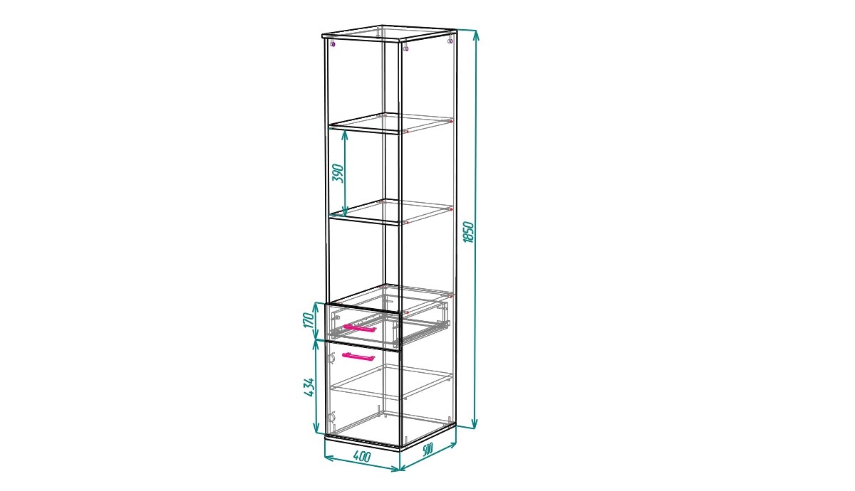 Классический шкаф-пенал Стиляга имеет три открытых полки сверху, выдвижной ящик и закрытую секцию за распашной дверкой с одной полкой - снизу. Достаточно много места для книг, личных вещей, игрушек и всего, что Ваш ребенок захочет спрятать в этом шкафу.