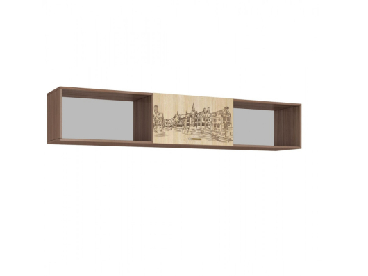 Полка навесная Орион станет замечательным дополнением интерьера детской комнаты. Изделие станет гармоничным дополнением как рабочей зоны, так и спального места. На открытых полочках ребенок сможет разместить любимые игрушки, интересные книги и заслуженные награды. За дверцей лучше всего скрыть более ценные и дорогие предметы. Классические цвета исполнения прекрасно сочетаются с дизайнерскими изображениями городов мира, нанесенными на фасады методом цветной фотопечати.