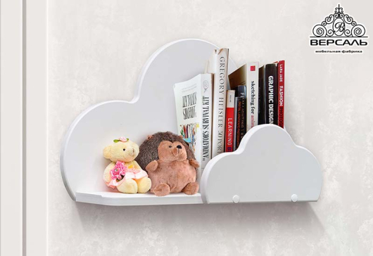 Полка для детской комнаты Облачко 2 удивительное решение, за счет которого можно значительно преобразить обстановку детской, подчеркнуть ее стиль и наделить пространство легкой воздушностью. -