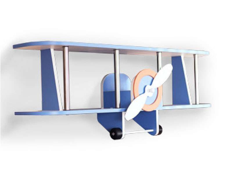 Материал: ЛДСП, крашенное МДФ, кромка ПВХ.Полка-самолет очень оригинальна и понравится всем без исключения. Крылья самолета выполняют функцию полок, достаточно больших, на них можно хранить книги или свои любимые игрушки. Конечно эта полка будет выполнять не только функцию хранения, но в первую очередь украшения детской комнаты.