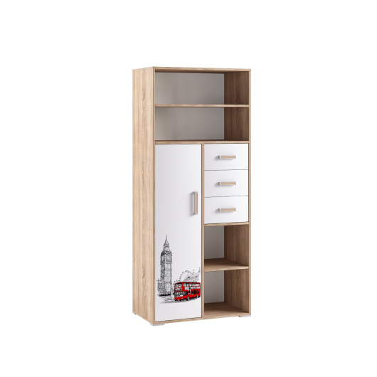 Стеллаж книжный Бланка станет отличным дополнением уютного интерьера детской комнаты. Открытые полки созданы для аккуратного размещения интересных и познавательных книг, любимых игрушек и сувениров. Пространство, скрытое за глухими дверьми, и три выдвижных ящика пригодятся для хранения более ценных и дорогих вещей для ребенка.