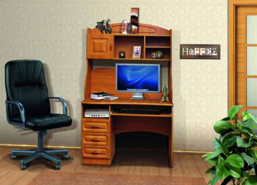 Удобный компьютерный стол можно использовать как письменный. Он подойдет для любого интерьера квартиры и офиса. Стол имеет три выдвижных ящика и удобные полки. -