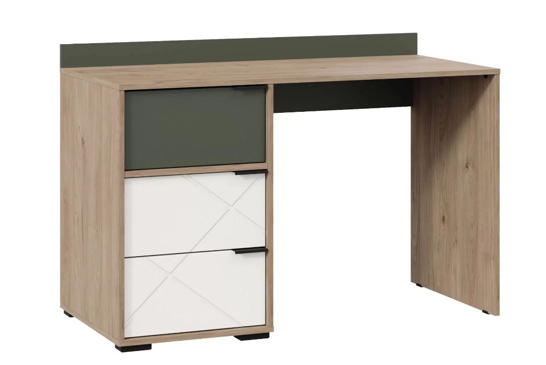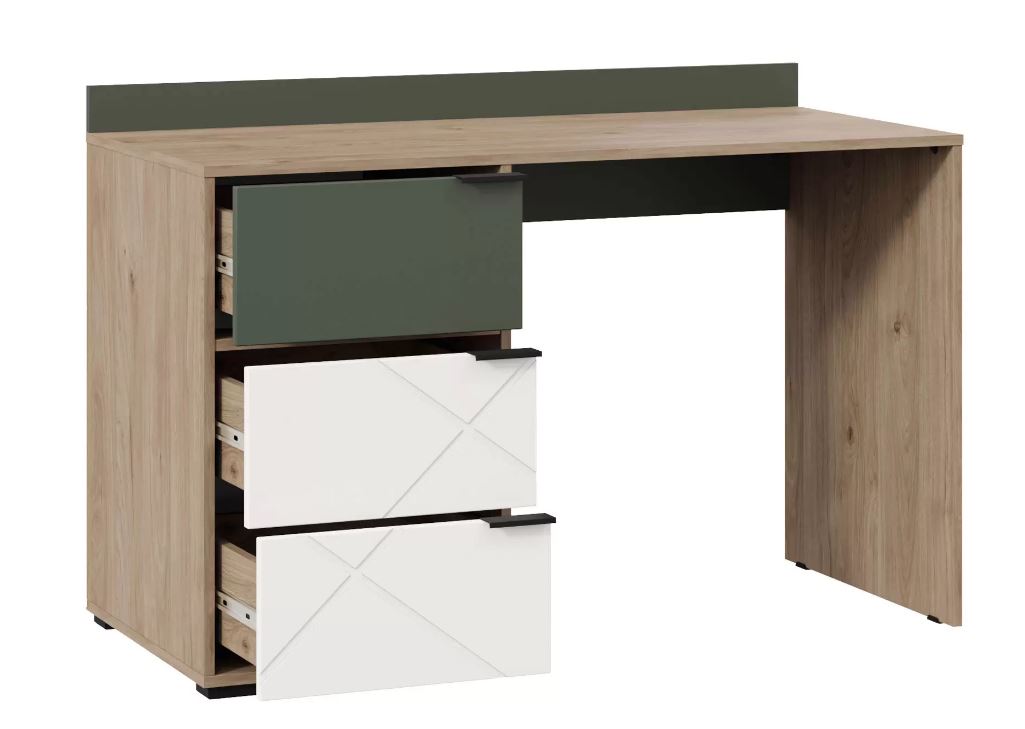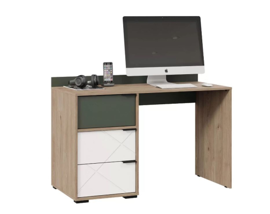 Стол письменный Лео в сочетании древесного цвета с зеленым и белым – это свежее и стильное решение, которое может добавить яркий акцент в комнату, особенно если вы стремитесь к природному или скандинавскому стилю. -