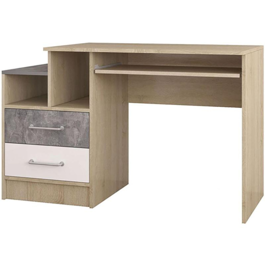 Стол письменный Колибри станет замечательным дополнением интерьера детской комнаты. Изделие поможет обустроить достаточно комфортное рабочее место, где ребенок будет с удовольствием выполнять домашнее задание. Два выдвижных ящика и открытые ниши созданы для аккуратного размещения разнообразных школьных и канцелярских принадлежностей. Мебель Колибри является соединением функциональности, современного дизайна, эргономичности, безопасности и надежности.