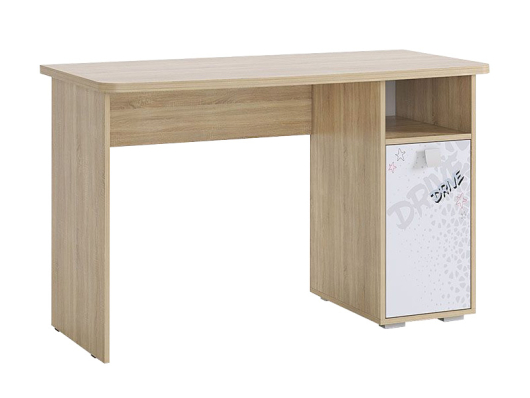 Письменный стол Энерджи поможет создать удобное рабочее место. Широкая и удобная столешница позволит разложить все необходимое и с удовольствием работать над домашними заданиями, а тумба с полками внутри и открытая ниша помогут держать необходимые предметы под руками.