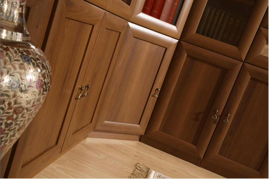 Библиотека Марракеш (вариант 1) приятно удивит вас своим классическим дизайном, а также функциональностью. Фасады шкафов, изготовлены из пробкового шпона, шелковисты и приятны на ощупь. Такой вариант идеально впишется в любой интерьер домашнего кабинета или гостиной.