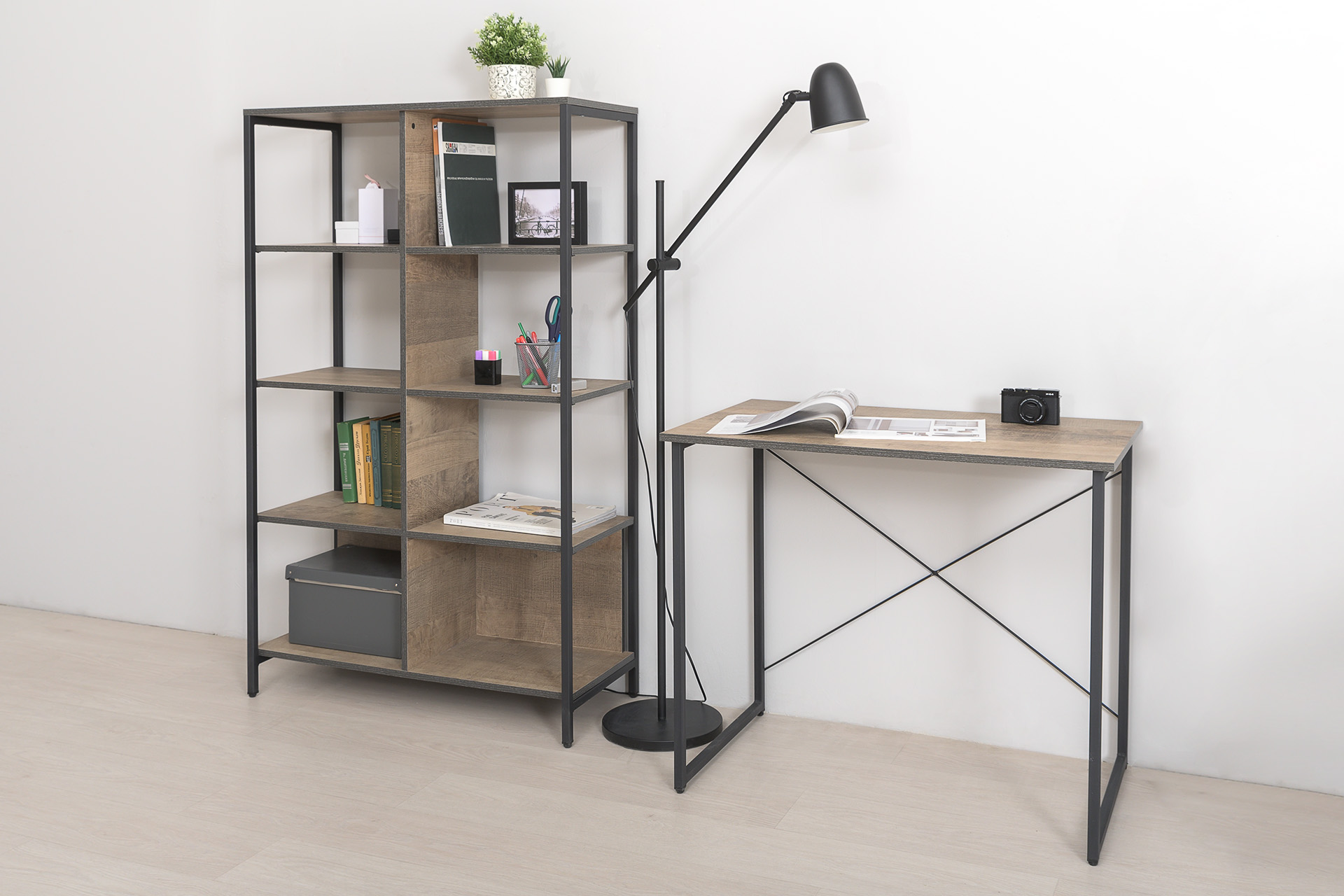 - стол Трувор 12.98 - Ш900 х Г530 х В750 мм.Домашний кабинет Трувор (вариант 2) поможет обустроить комфортную рабочую зону. Стол имеет широкую столешницу, на которой можно разместить ноутбук, документы и при этом спокойно делать записи. Открытые полки стеллажа для хранения познавательных книг, папок с документами и других необходимых вещей. Мебель является надежным благодаря металлическим стойкам с регулируемыми опорами. Использование крестовых металлических стяжек вместо задней стенки делает конструкции лёгкими, воздушными и чрезвычайно прочными к боковым нагрузкам.