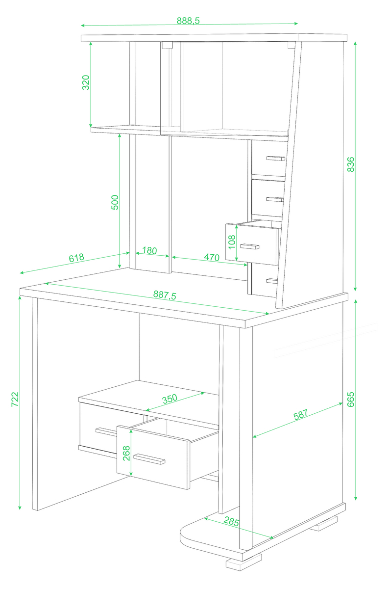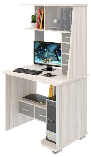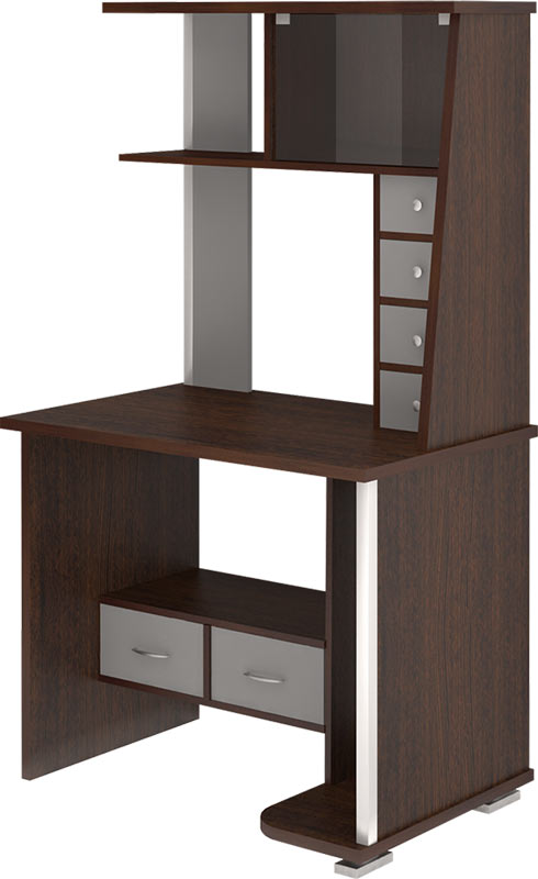 Компьютерный стол СК-10 будет служить дома мини-офисом. Большая полка для книг и большое количество ящиков очень удобны для организации рабочего пространства.