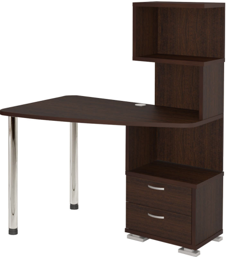 Компьютерный стол СКМ-60 выполнен в стиле минимализма. Удобное угловое расположение, поможет съэкономить пространство. Компьютерный стол СКМ-60 изготовлен из ДСП толщиной 25 мм. Имеет 2 выдвижных ящика.