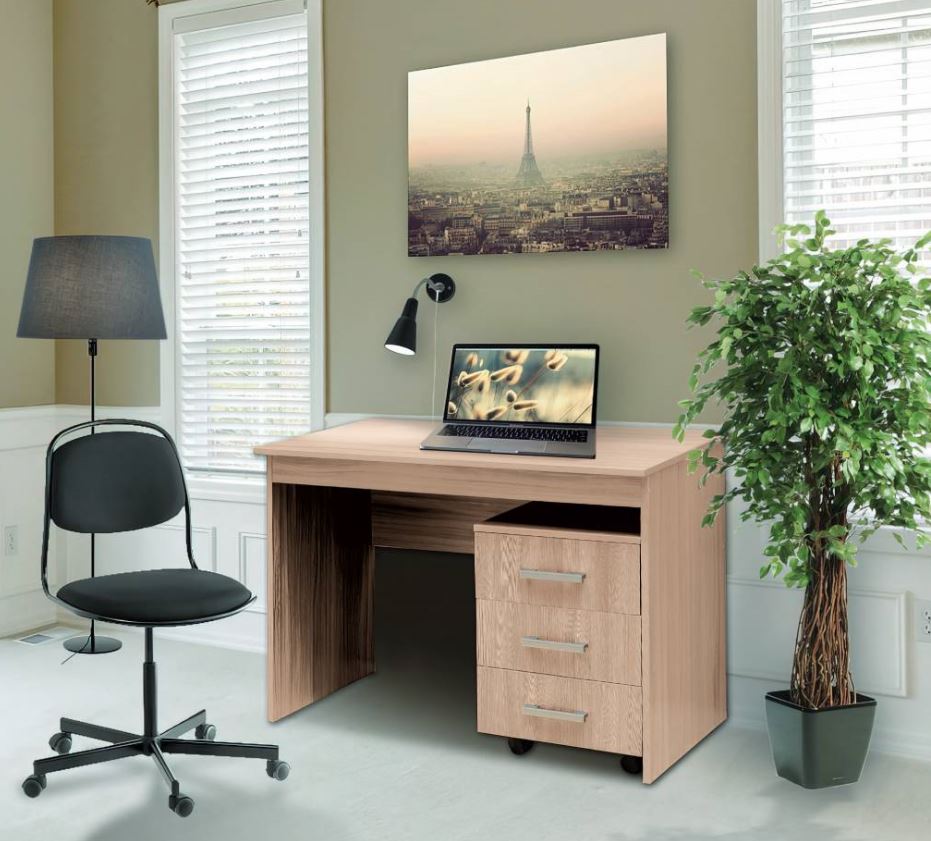 Стол письменный с выкатной тумбой имеет компактные размеры и может использоваться для различных целей, благодаря универсальности. Он состоит из просторной столешницы и выкатной тумбы с ящиками, в которых можно разместить канцелярские принадлежности и прочие мелочи. -