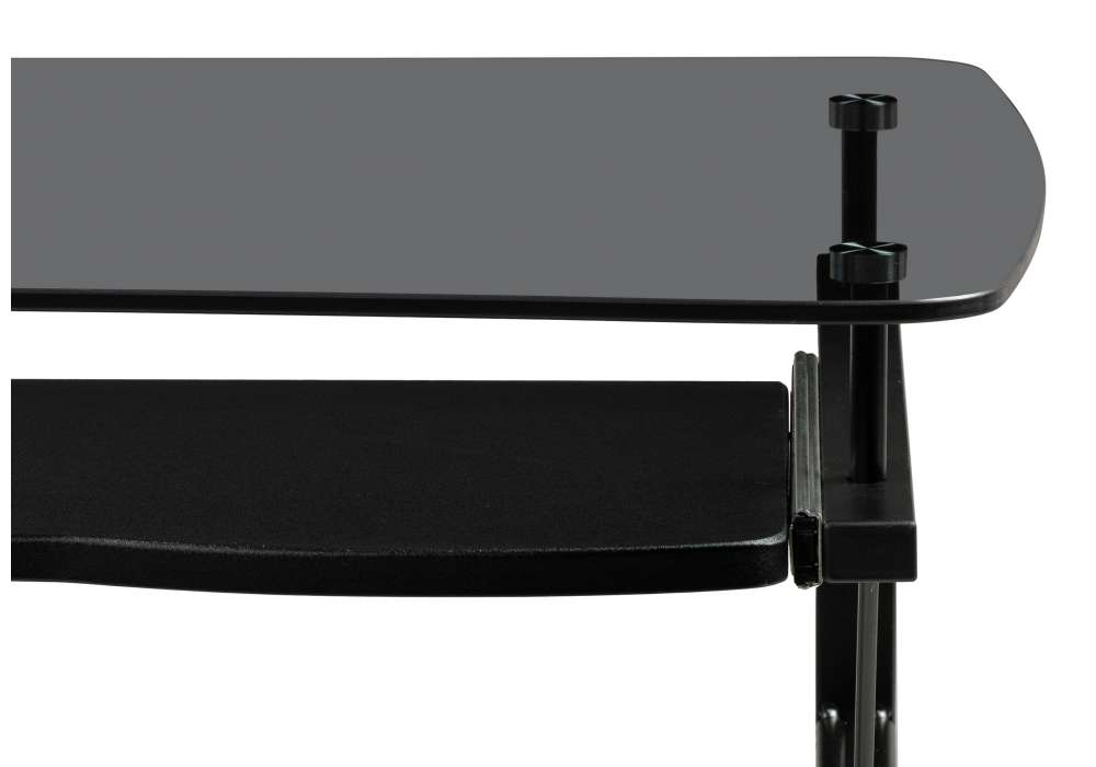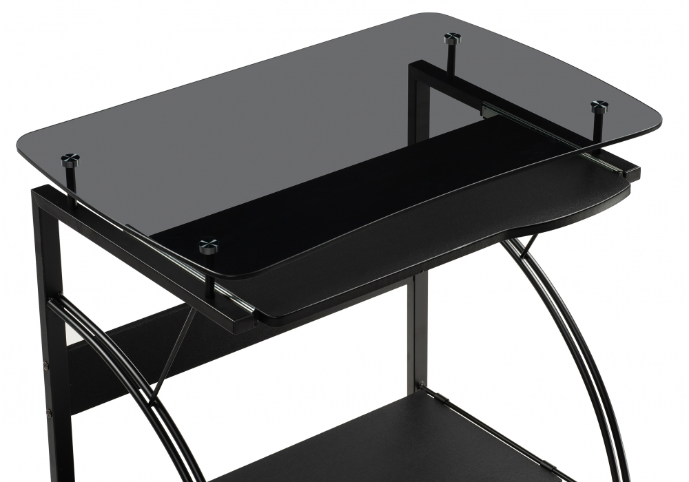 Компьютерный стол Glen black идеально подойдет для любого современного интерьера, а также понравится истинным эстетам. Изделие поможет обустроить достаточно комфортное место, где вы будете с удовольствием выполнять различные задания. Под столешницей находится специальная выдвижная полка для клавиатуры.
