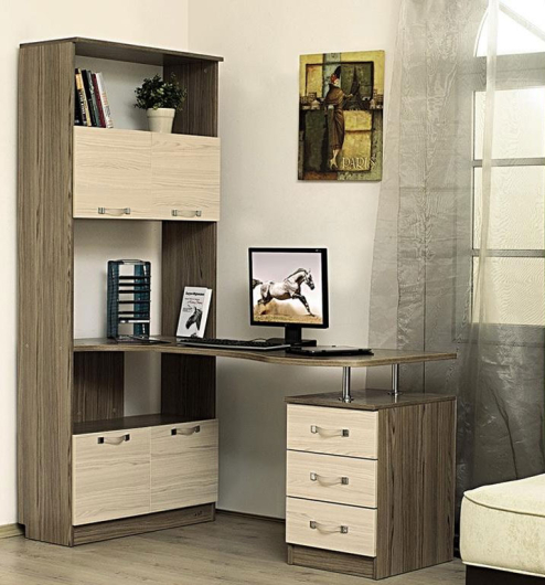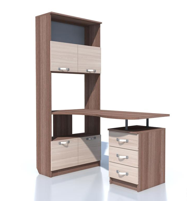 Стол компьютерный СК 01.11 -стол с пристроенным шкафом и тумбой для компьютера для современной квартиры или офиса. В тумбе три выдвижных ящика.