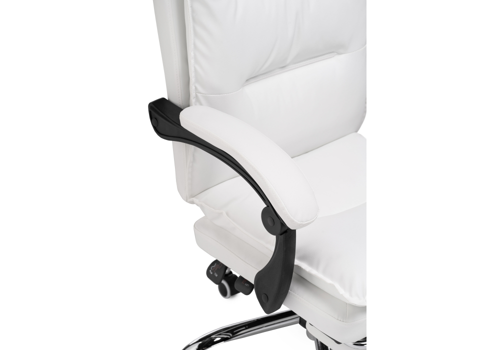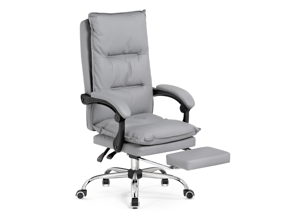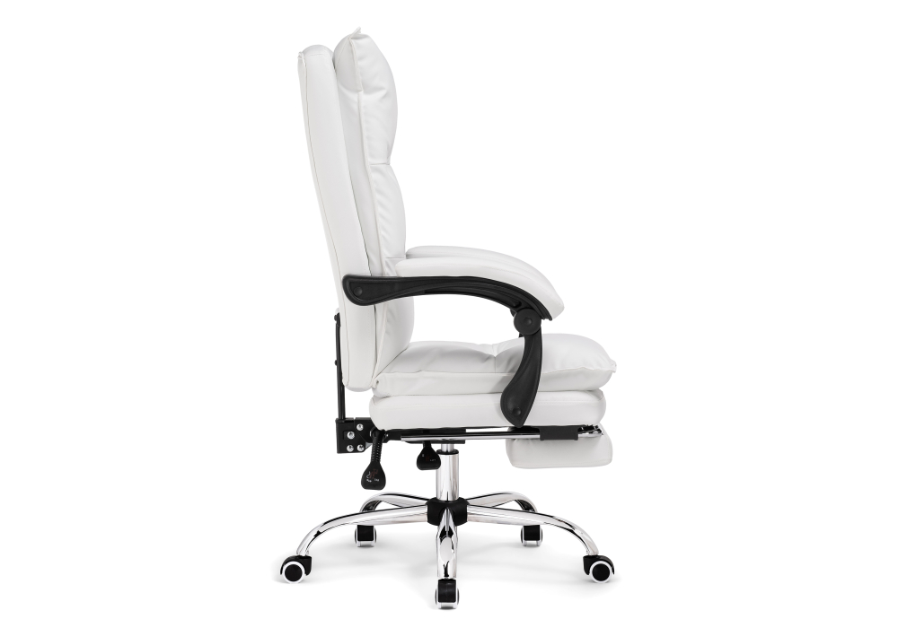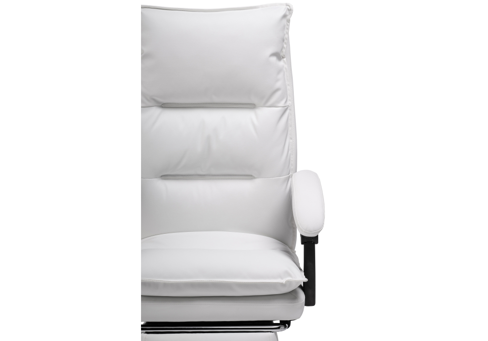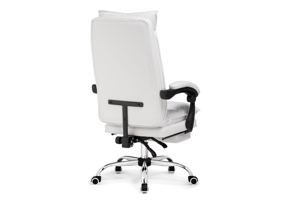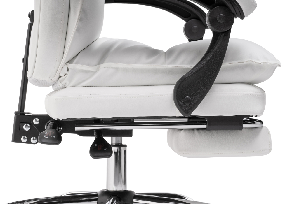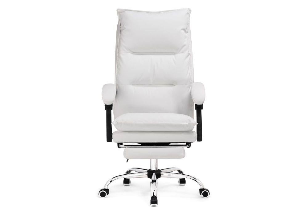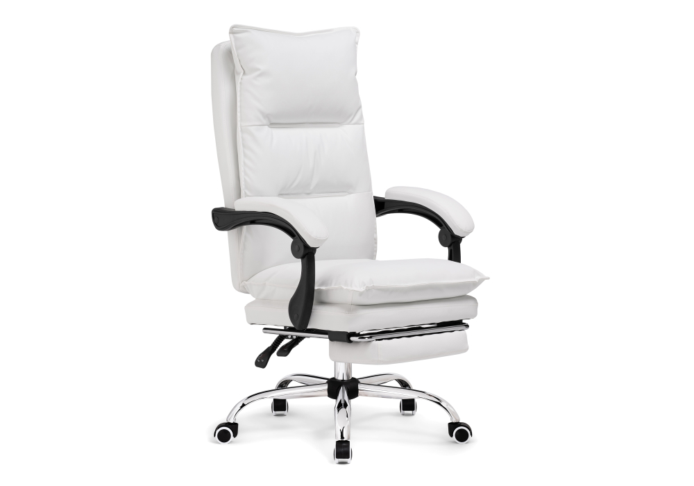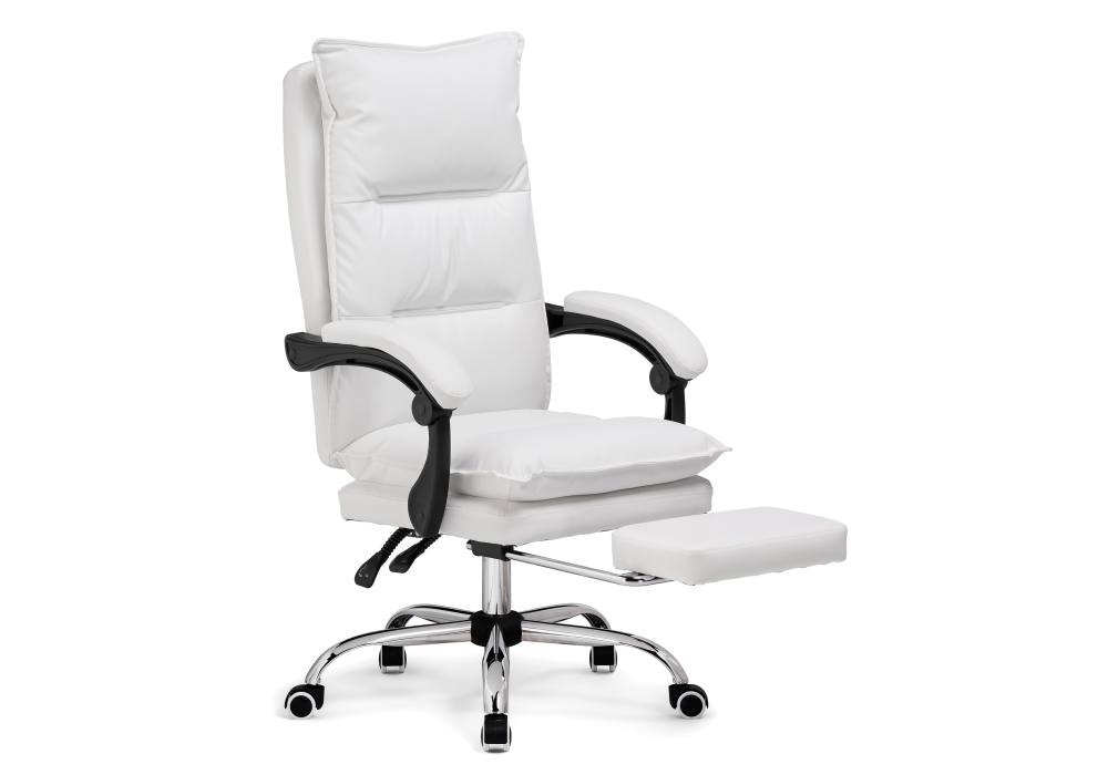 Компьютерное кресло Fantom мягкое и удобное Компьютерное кресло Fantom выполнено в экокоже белого и светло-серого цвета. Кресло оснащено системой качания синхромеханизм, регулируемый угол наклона спинки и сиденья одновременно. Кресло также имеет удобную выдвижную подставку для ног.