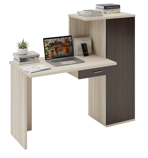 Стол СКЛ-Прям100+ШК станет прекрасным дополнением во время обустройства уютного и функционального рабочего места. Достаточно просторная столешница позволит разместить все необходимое под рукой и делать записи или выполнять работу на ноутбуке. Надстройка пригодится для размещения книг, ярких фотографий, различных грамот и оригинальных предметов декора. -