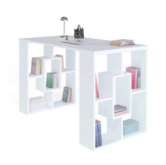 Письменный стол СПМ-15 понравится всем любителям минималистичных светлых деталей в интерьере. Создавая эту модель, дизайнеры отошли от привычного оформления письменно стола и сделали его ножки функциональными — в виде стеллажей. Больше не нужно подбирать громоздкие тумбы, на столе достаточно места для ноутбука и нужных в работе материалов, а на его опорах — для книг, канцелярии и любимых предметов для настроения. Вы можете поставить стол вдоль стены, перпендикулярно к ней, по центру комнаты или использовать его для зонирования пространства. Стол будет выглядеть как свежий глоток воздуха в комнате благодаря окошкам в ножках-стеллажах.