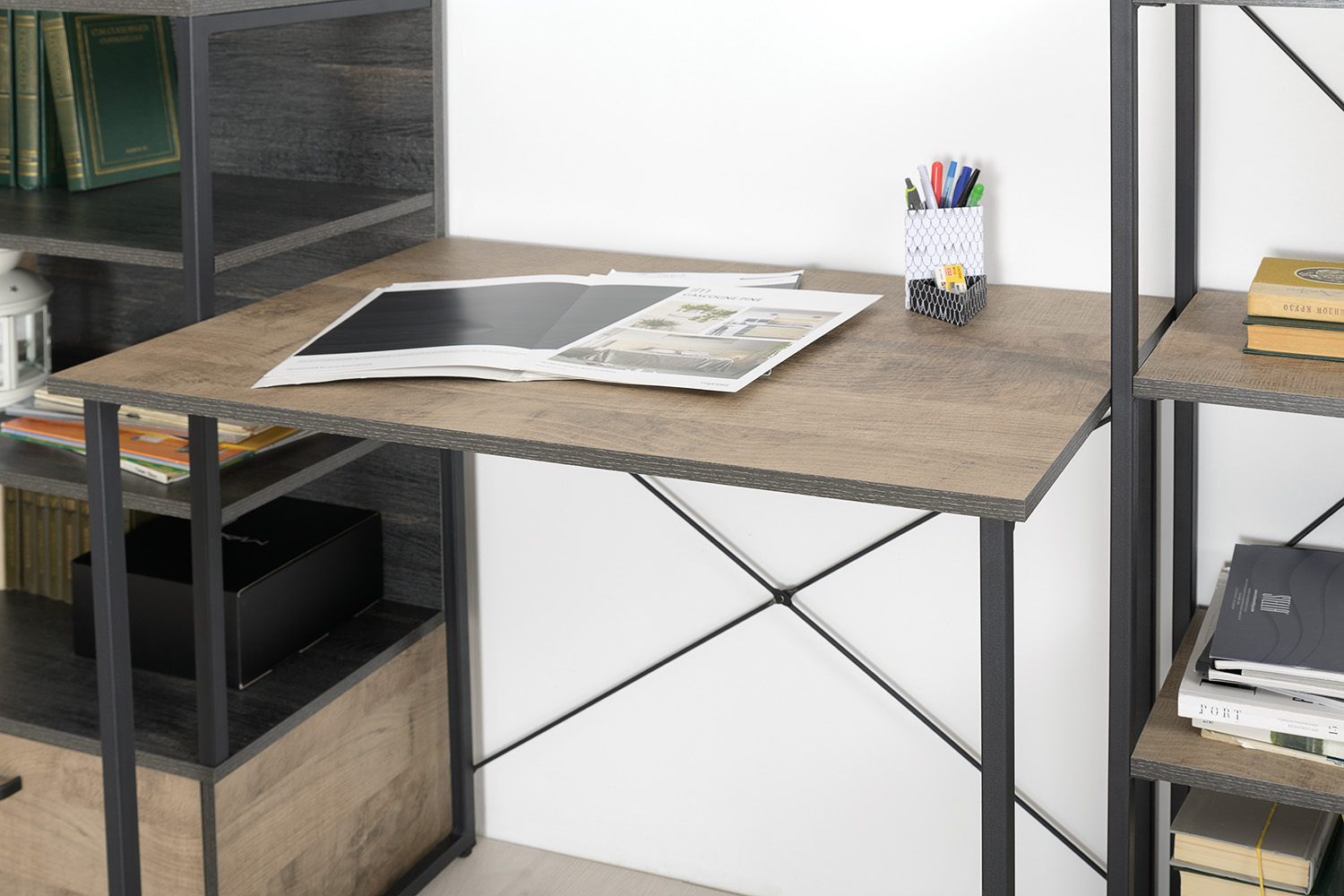 Стол Трувор 12.98 поможет создать идеальное рабочее место. Изделие имеет широкую столешницу, на которой можно разместить ноутбук, документы и при этом спокойно делать записи. Стол является надежным благодаря металлическим стойкам с регулируемыми опорами. Использование крестовых металлических стяжек вместо задней стенки делает конструкции лёгкими, воздушными и чрезвычайно прочными к боковым нагрузкам.