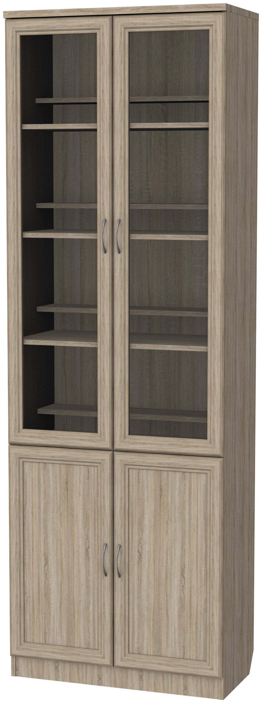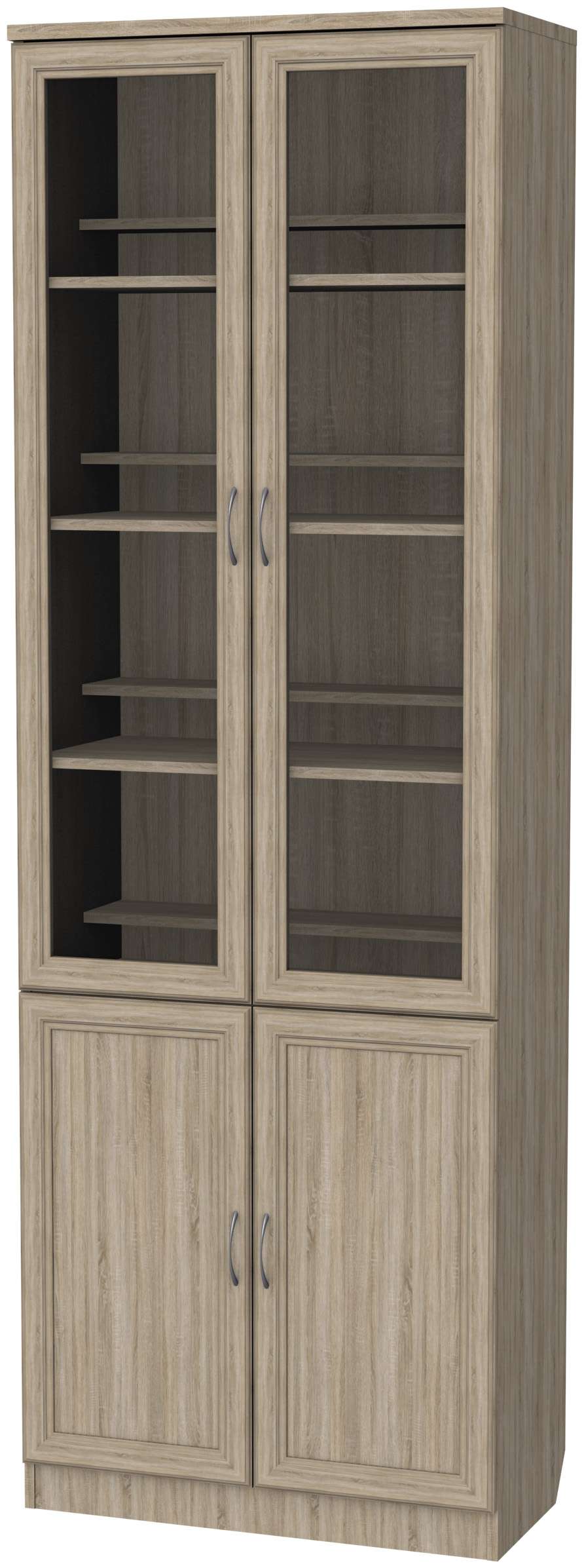Вы любите читать? Тогда шкаф для книг Гарун 200 - именно то, что вы так давно искали. На полках за дверьми со стеклянными вставками будет отлично смотреться вся коллекция интересных и познавательных книг. За двумя нижними глухими дверцами вы сможете хранить более ценные и редкие экземпляры. Особенностью шкафа является наличие двойного ряда полок для книг.