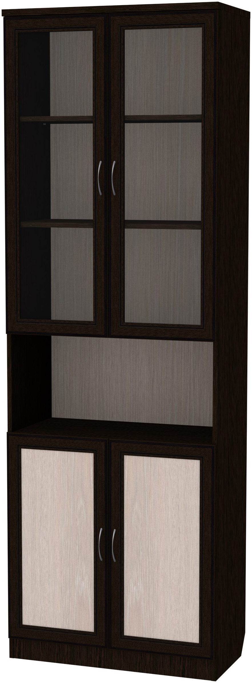 Шкаф-витрина Гарун 207 станет отличным дополнением уютной библиотеки или гостеприимной гостиной. Небольшое изделие является весьма функциональным. На полках за дверьми со стеклянными вставками будет отлично смотреться вся коллекция интересных и познавательных книг, наборы роскошной посуды, чайные сервизы, элегантные статуэтки и оригинальные предметы декора. За нижними глухими дверцами вы сможете хранить более ценные вещи.