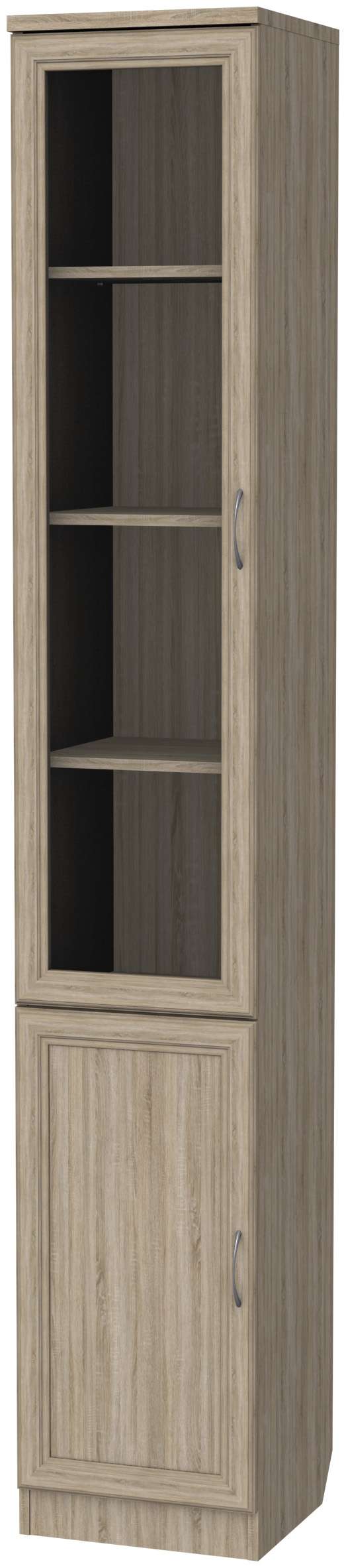 Шкаф-витрина узкая Гарун 203 станет отличным дополнением уютной библиотеки или гостеприимной гостиной. Небольшое изделие является весьма функциональным. На полках за дверью со стеклянной вставкой будет отлично смотреться вся коллекция интересных и познавательных книг, наборы роскошной посуды, чайные сервизы, элегантные статуэтки и оригинальные предметы декора. За нижней глухой дверцей вы сможете хранить более ценные вещи.