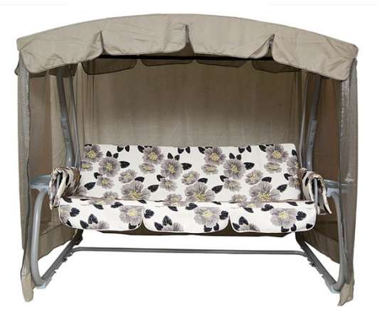 Садовые качели Турин с противомоскитной сеткой мебельная ткань. Имеют широкое и удобное сиденье. Надёжный и прочный каркас будет служить долгие годы. В тент-крышу вшита москитная сетка, которую при необходимости можно отстегнуть. Подвесная часть качелей - сиденье, сделано из пружинной сетки, благодаря чему на качелях удобно и мягко сидеть. Так же удобство дополняется толстым восьмисантиметровым матрасом. А по бокам для комфорта имеется два мягких подлокотника.