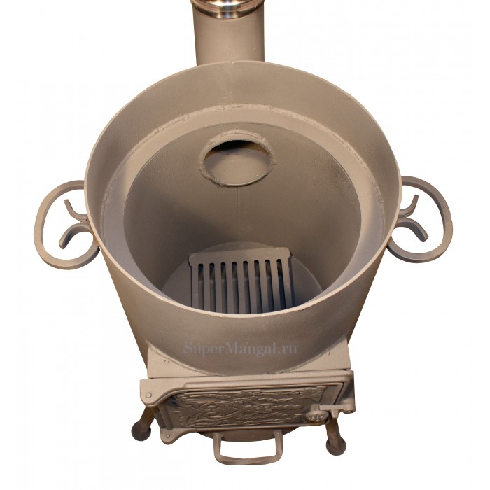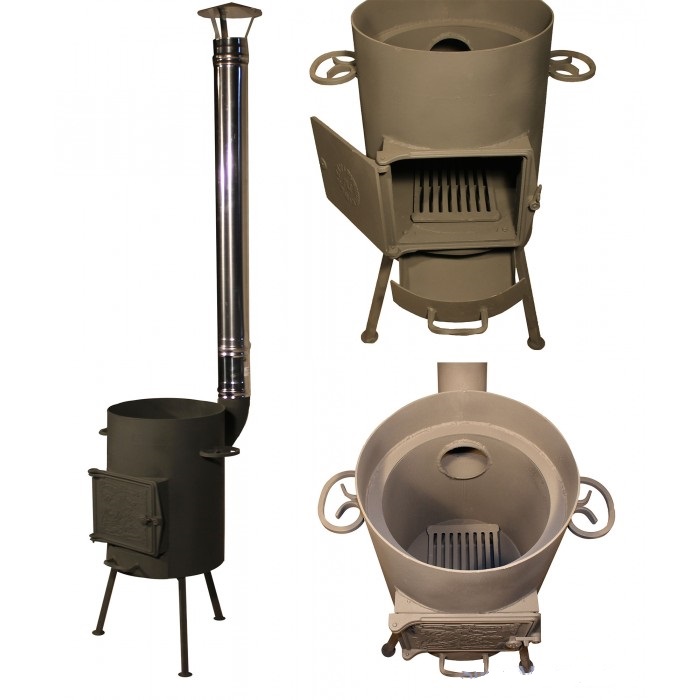 Надежная и долговечная печь с толщиной стали 3 мм. Благодаря двойной стенке и относительно маленькой камере горения, она защитит Вас от случайных ожогов и позволит экономить дрова, эффективно сохраняя жар внутри. Используя эту печь, повару доступна возможность контроля интенсивности горения в топке при помощи задвижки на дымоходе, выполненной из нержавеющей стали толщиной 0,5 мм. Дымоход и ножки съемные, делая печь удобной для транспортировки и межсезонного хранения. Дверце топки, а так же колосник выполнены из чугуна и соответственно обладают максимальной долговечностью. -