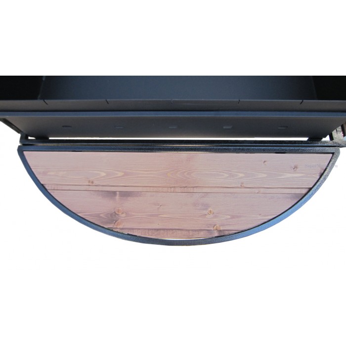 Мангал дачный с дровницей МД2 оснащен колесами для удобства передвижения по двору загородного дома, деревянными столиками из вагонки, нишей под дрова. Топка стандартная ТП-1 для мангалов серии МД, толщина стали 2,0 мм, обвязка из металлического прутка сечением 10х10. Топка с прорезями для шампуров, отверстиями для поддува, стойками под вертел и ручками для переноски.