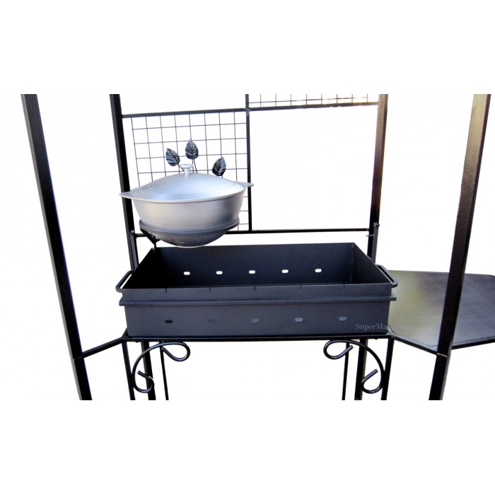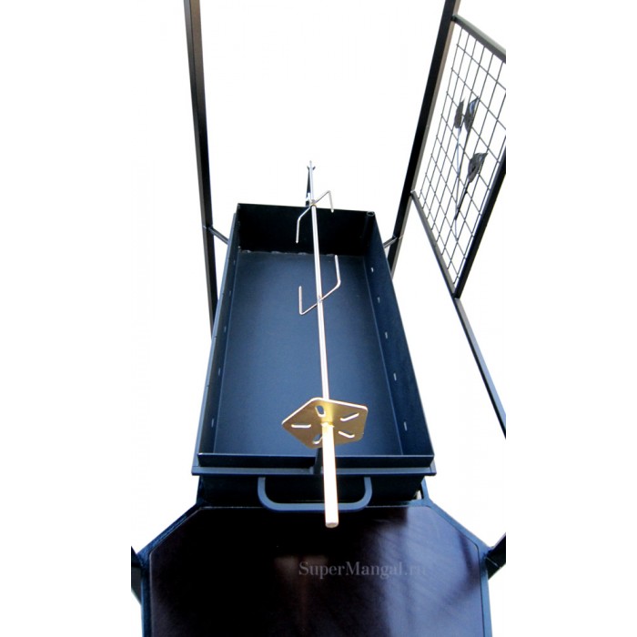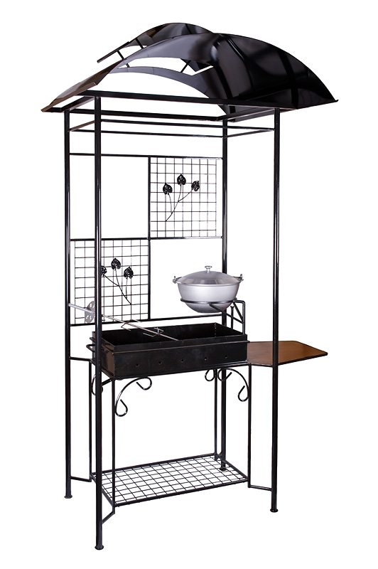 Теперь приготовить шашлыки, бифштексы и отбивные любителям дачного отдыха можно и в плохую погоду, благодаря крыше этого разборного мангала. А оригинальный дизайн и декоративные элементы этого мангала украсят двор загородного дома.