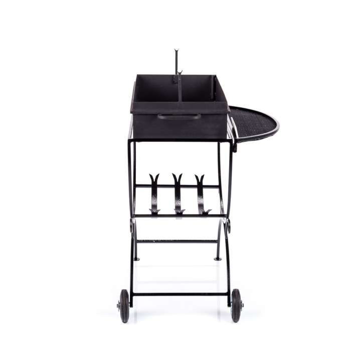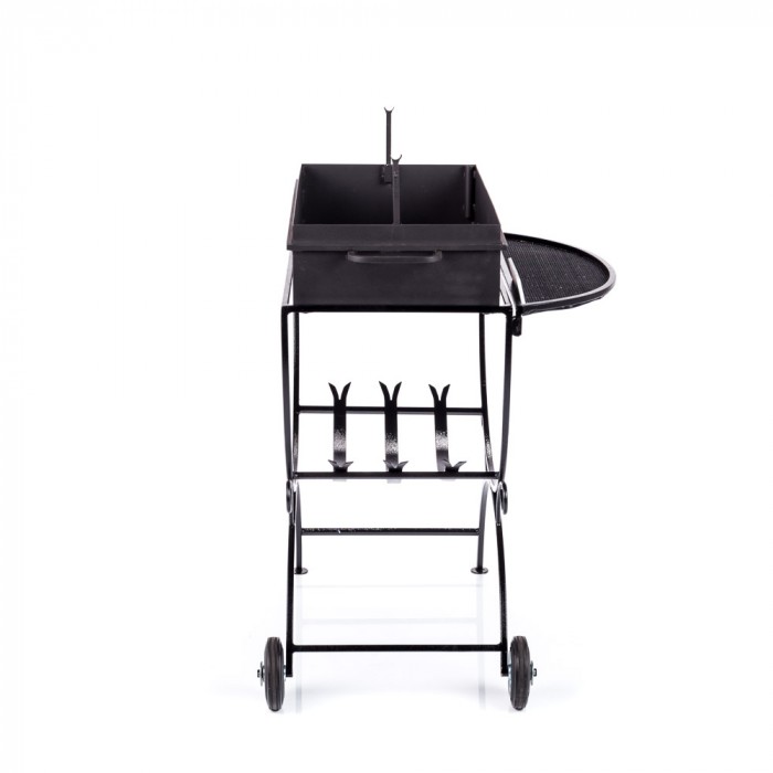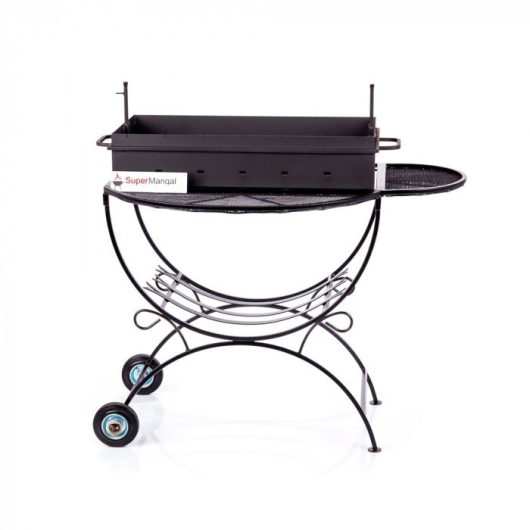 Мангал дачный МД1С изготовлен из качественного металлопроката с нишей под дрова и двумя колесиками для удобства передвижения мангала по участку. Жаровня изготовлена из стали толщиной 2,0 мм и усилена обвязкой из металлического прутка сечением 10х10 мм. Жаровня оснащена прорезями для шампуров, отверстиями для поддува, стойками под вертел и ручками для переноски. Столики из стальной сетки.