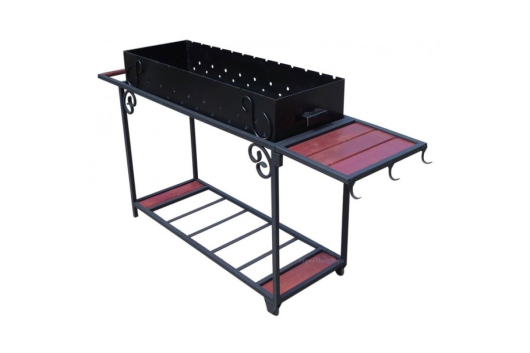 Мангал дачный ММ-22М создан, чтобы служить комфортным и надежным уголком отдыха на территории Вашего загородного дома. Корпус, покрытый стойкой к атмосферным влияниям жаростойкой матовой эмалью, обеспечит модель долгим эксплуатационным сроком. Жаровня имеет средние размеры: Ш1000 х Г350 х В170 мм, изготовлена из 3-х мм стали, что делает модель достаточно устойчивой к тепловым деформациями. Столешница с крючками и дровница, которыми также оснащен мангал, позволят Вам в полной мере насладиться высоким уровнем функциональных возможностей данной модели. Для обеспечения максимальной мобильности мангала его оснастили парой колес и предусмотрели возможность быстрой и легкой сборки и демонтажа на отдельные составляющие.