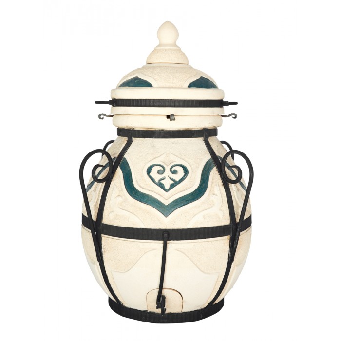Качественный тандыр российского производства, выполнен из экологически чистого материала-шамотной глины. Это свойство придает каждому блюду при приготовлении свой уникальный аромат и вкус. Изделие отличается высокой прочностью за счет толстых восьмисантиметровых стенок а также благодаря дополнительному усилению конструкции в виде стальной окантовки с элементами ковки. Конструкция тандыра "Дастархан NEW" позволяет готовить различный спектр блюд, начиная от классического запеченного шашлыка, стейков и овощей, размещенных на удобной этажерке и заканчивая рыбой и бараньей ножкой, которую вы сможете подвесить над углями, благодаря стальному перекрестию в горловине. В отличие от блюд, приготовленных на углях в жаровне мангала, продукты в разогретом тандыре запекаются за счет жара от стенок. При этом они получаются сочными и ароматными. Толщина стенок тандыра позволяет готовить блюда в нем 2 раза быстрее, чем на мангале или гриле, при этом отпадает необходимость в контроле за процессом приготовления. Ваша задача лишь прогреть тандыр до нужной температуры с помощью дров, загрузить мясо или рыбу внутрь изделия, и через 15-20 минут первая партия ароматного шашлыка или подкопченной рыбы готова. Можно звать семью к столу!
